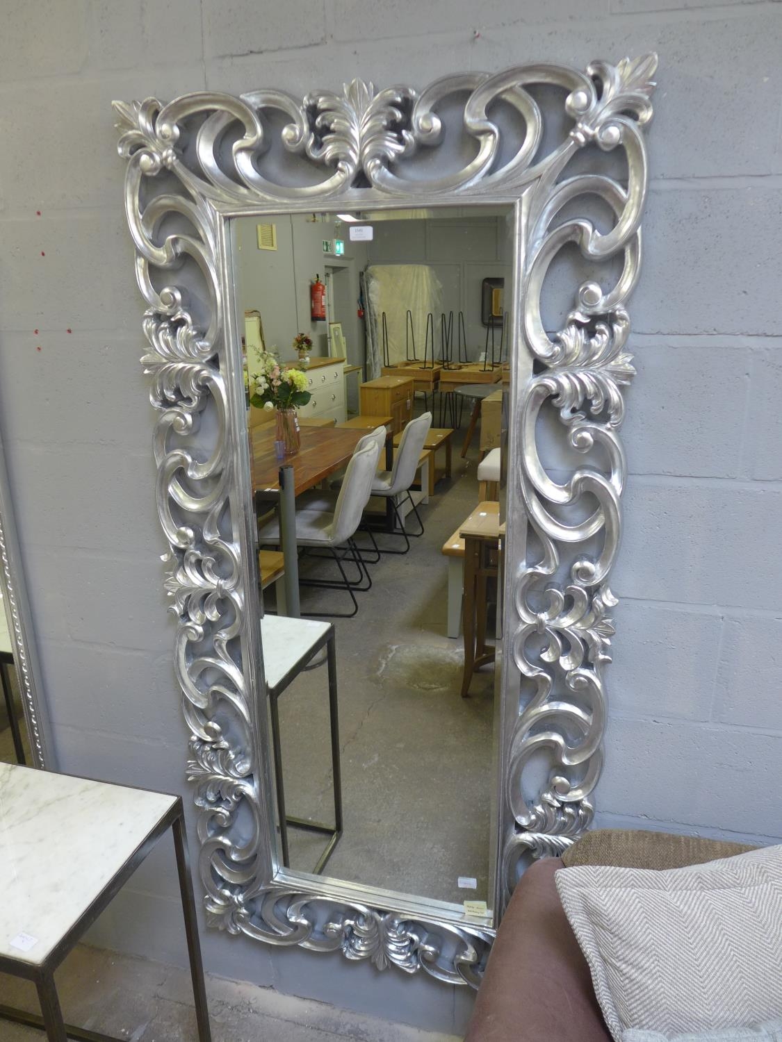 A large silver finish wall mirror, 181 x 91cms (MRE066S130) #