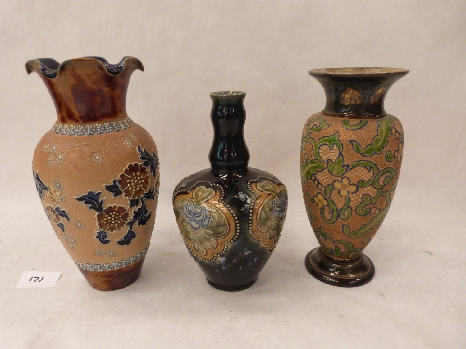 Three Royal Doulton vases, the tallest 8¼' high