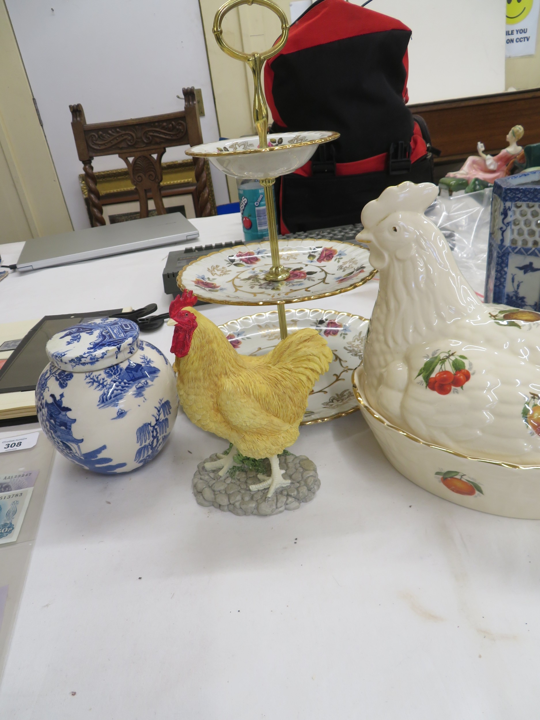Cake stand and Mason's ginger jar, Hen egg holder and Border Fine Arts hen ornament
