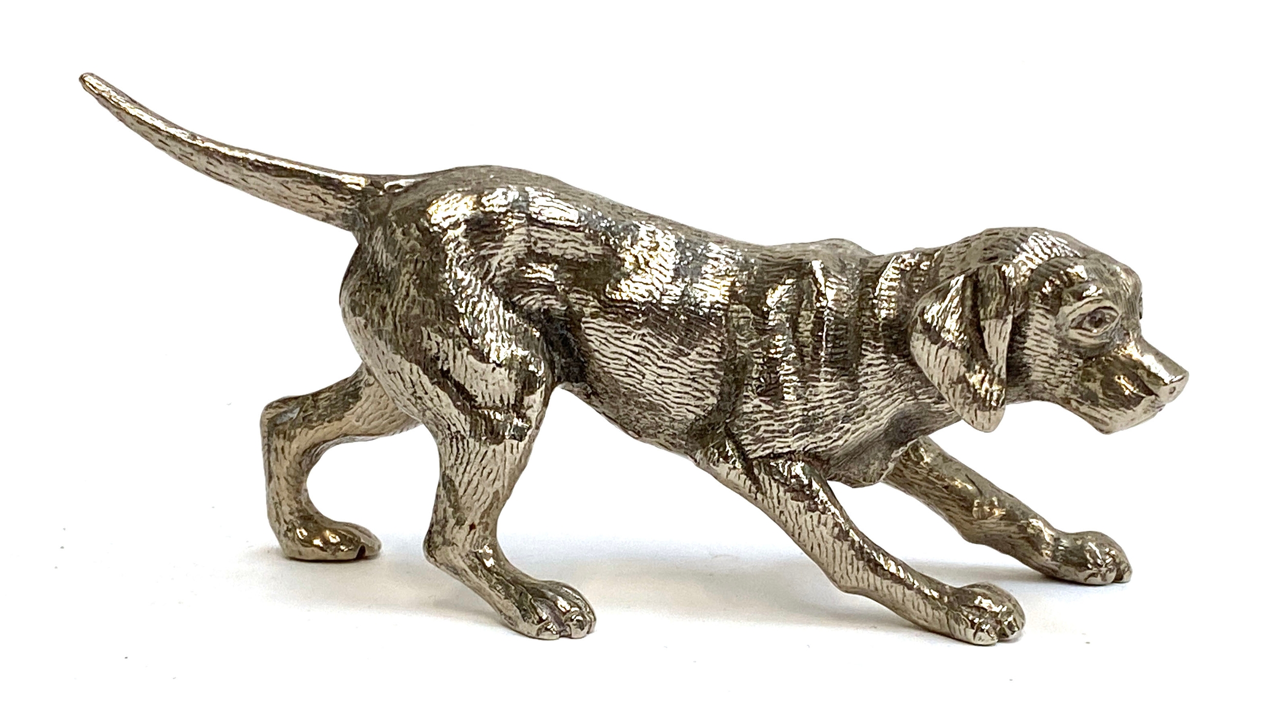 A silver plated figure of a labrador, 16cmL