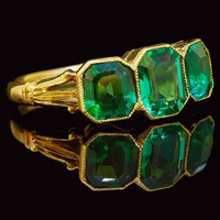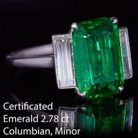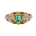 ANTIQUE GREEN TOURMALINE AND DIAMOND DRESS RING, set with a central green tourmaline of approx. 0.76 ct. flanked with s diamond on each side. The head and shoulders of part openwork scrolling design. Size M. 3.9 grams.