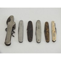 Seven penknives and pocket tools include brands such as Rodgers, Wilkinson Sword, Mappin & Webb Trustworthy, and a lighter multi-tool, among others.