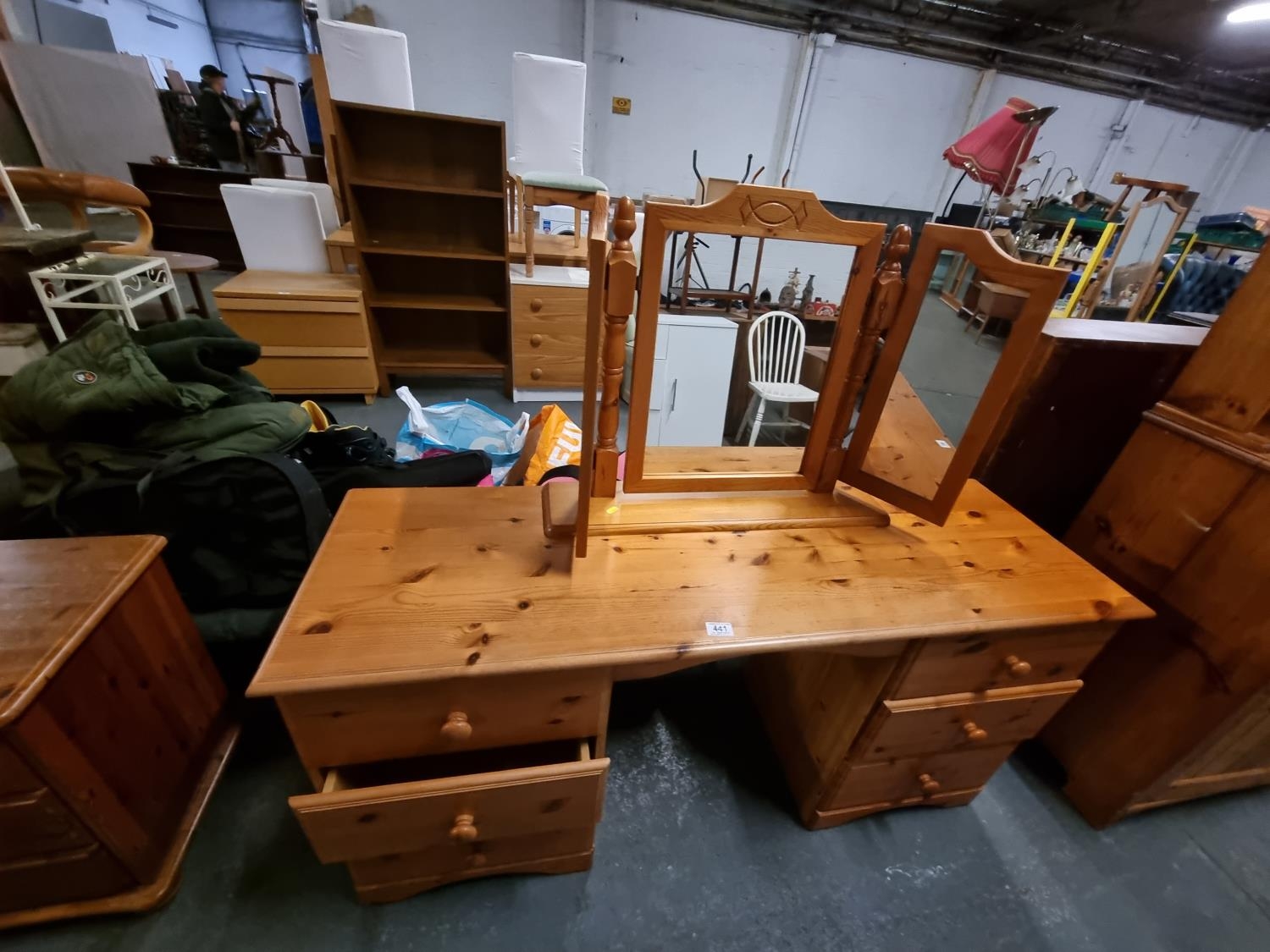 Pine dressing table and triple mirror