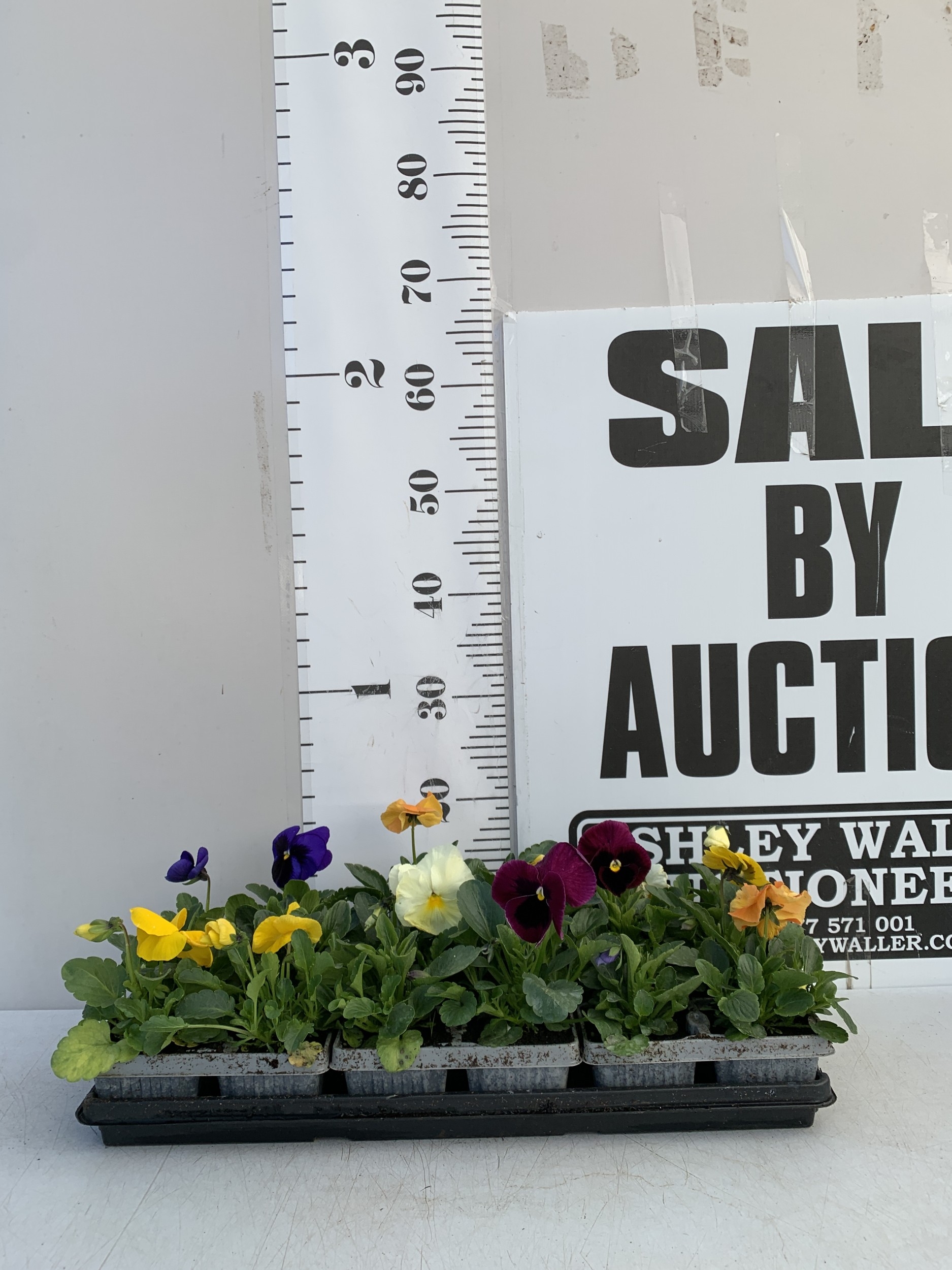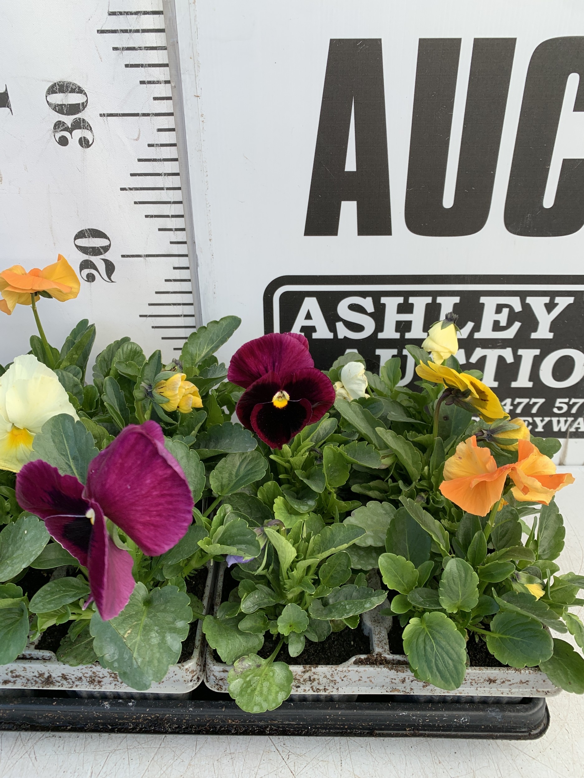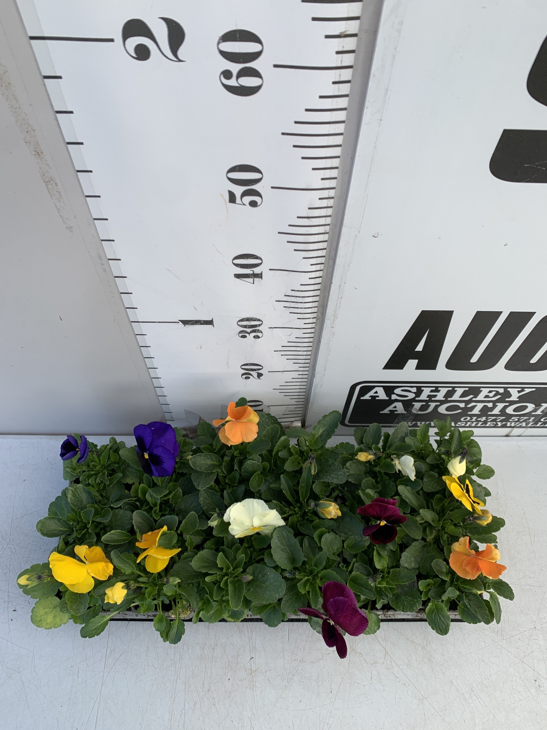 EIGHTEEN MIXED COLOUR PANSIES ON THREE TRAYS. TO BE SOLD FOR...
