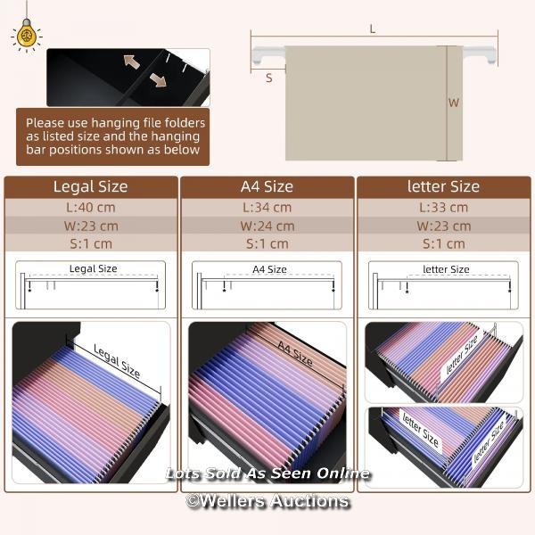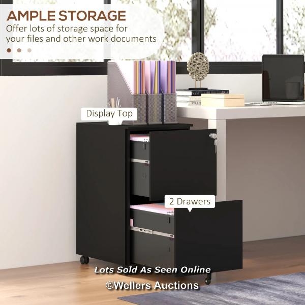 RRP: 99.99 - VINSETTO 2-DRAWER VERTICAL FILING CABINET WITH LOCK AND 5 WHEELS, STEEL MOBILE FILE CABINET, FOR A4, LEGAL AND LETTER SIZE, PRE-ASSEMBLED BODY, BLACK / BOXED / NOT FULLY CHECKED / SEE IMAGES