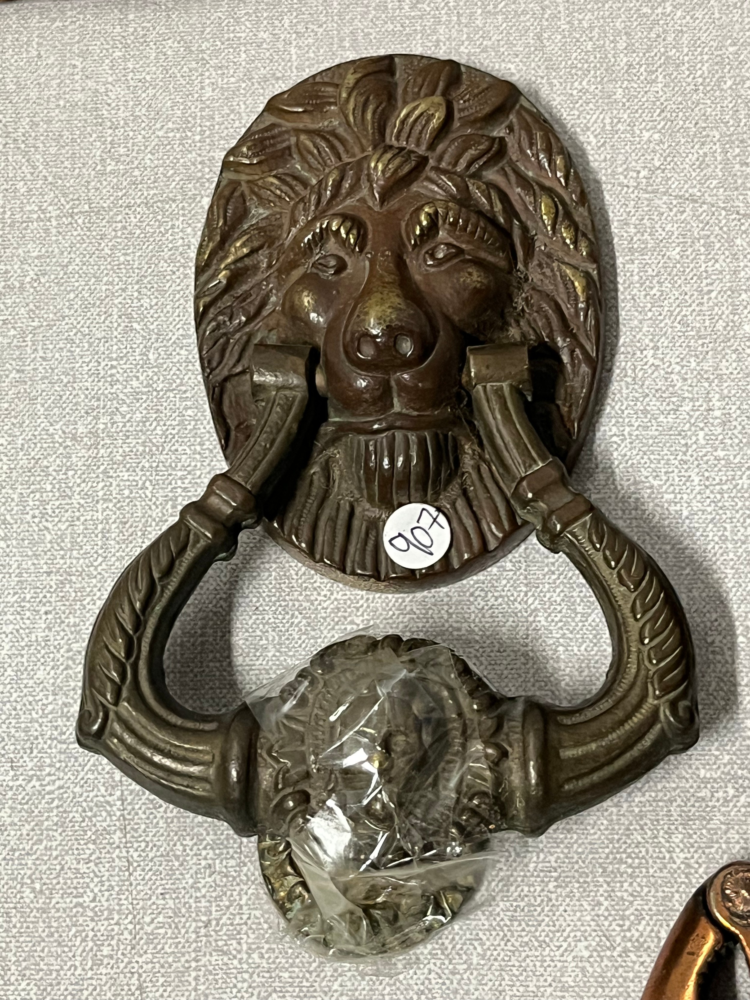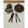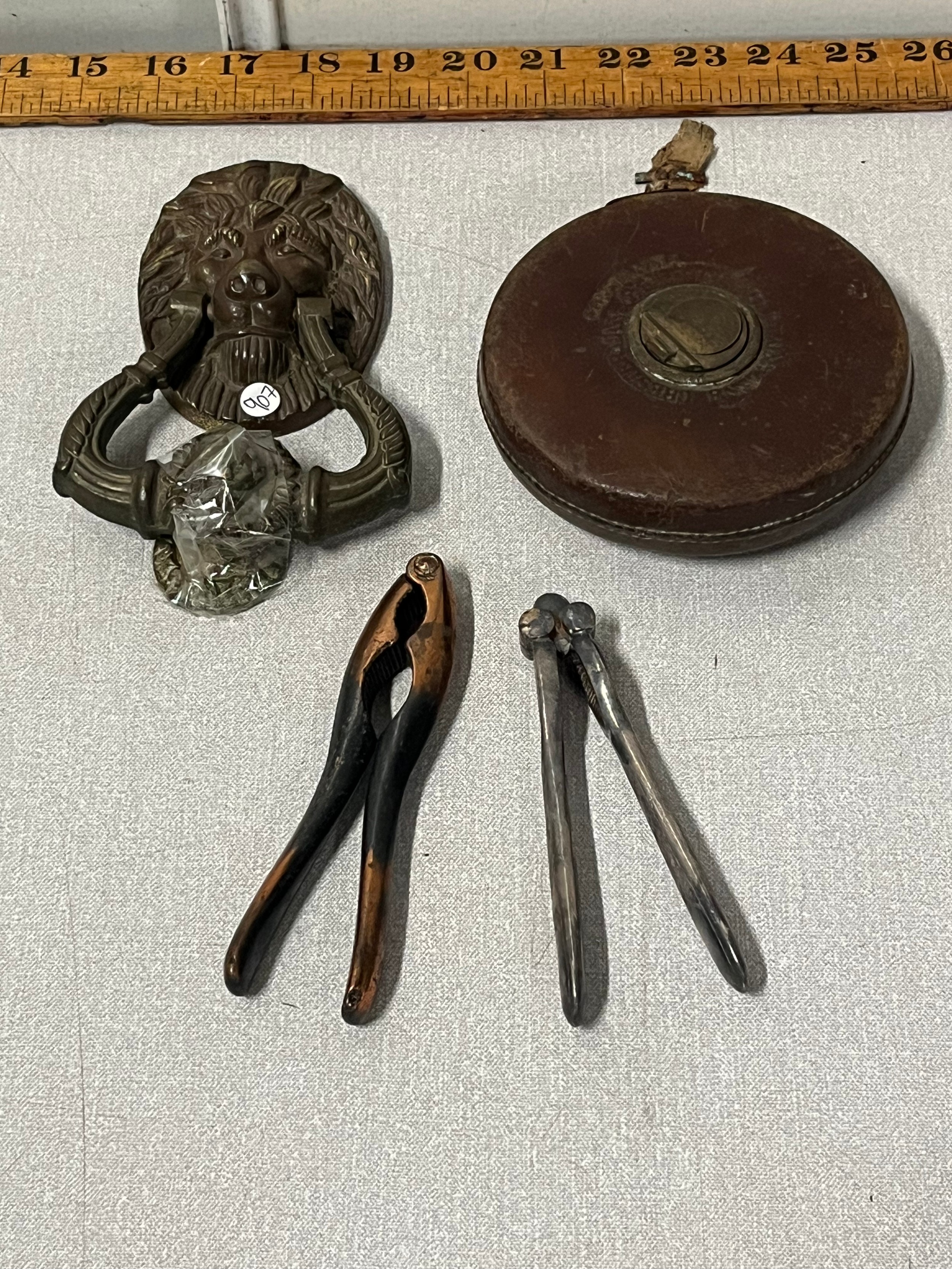 Vintage lion door knocker, tape measure & 2 sets of nutcrackers.