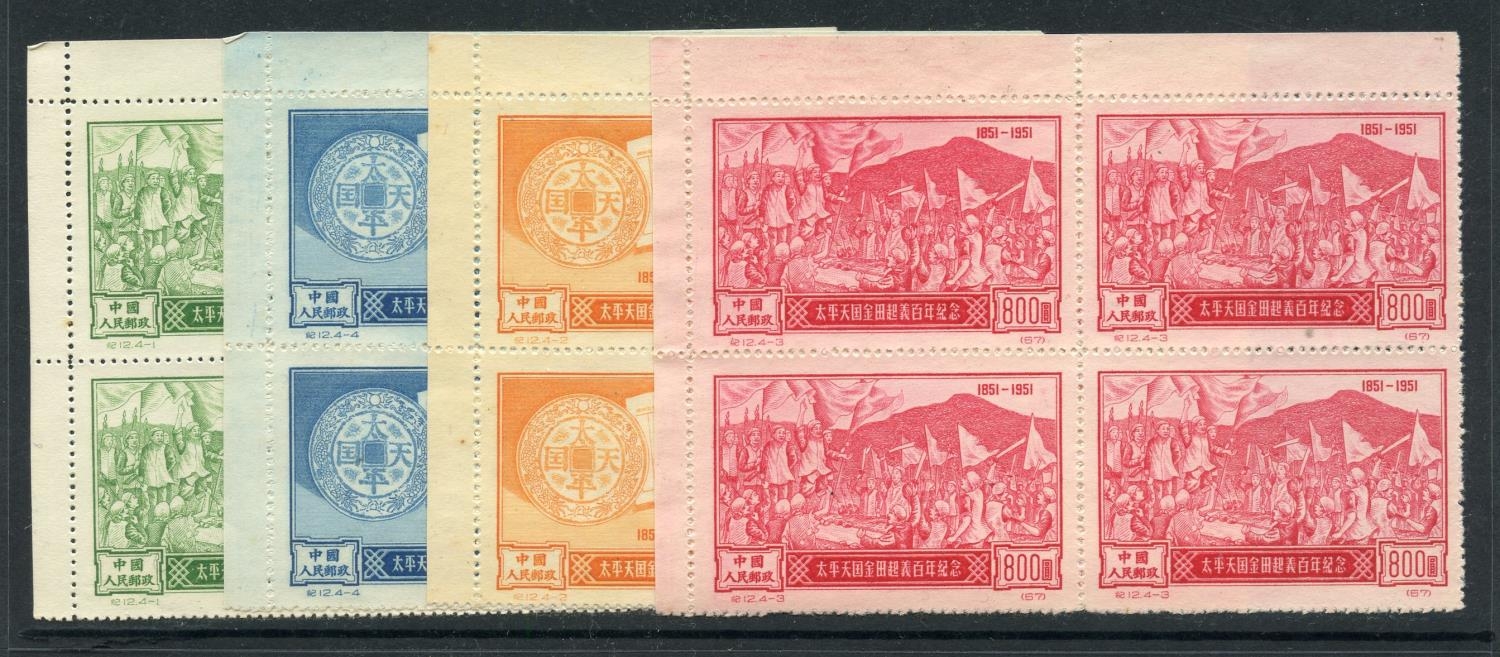 CHINA PR 1951 Taiping Rebellion set in blocks of 4 NGAI, genuine. SG 1526 - 9. Cat £240.