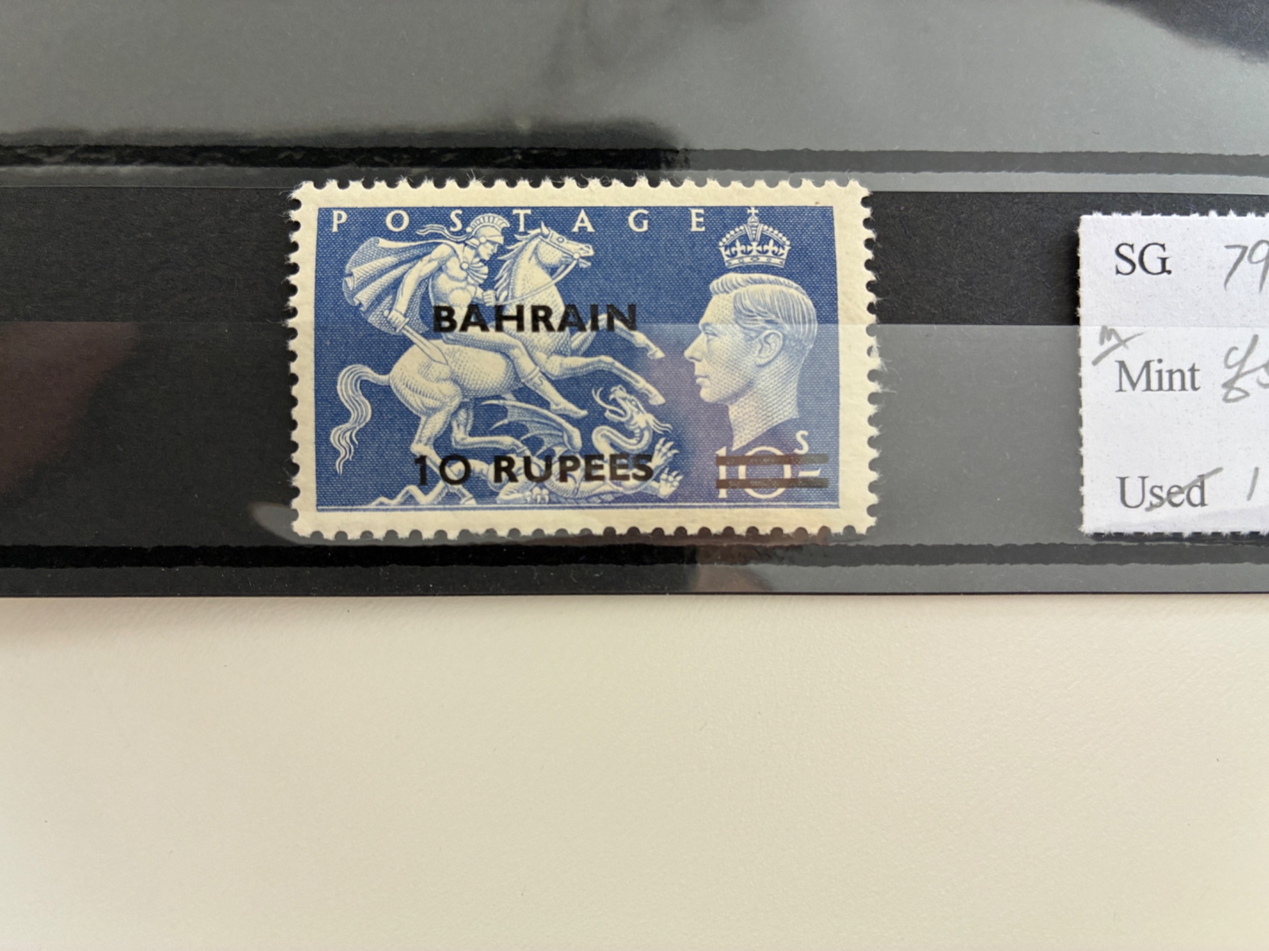 Bahrain 1951 10r on 10s ultramarine, m/m (SG 79) Cat £50