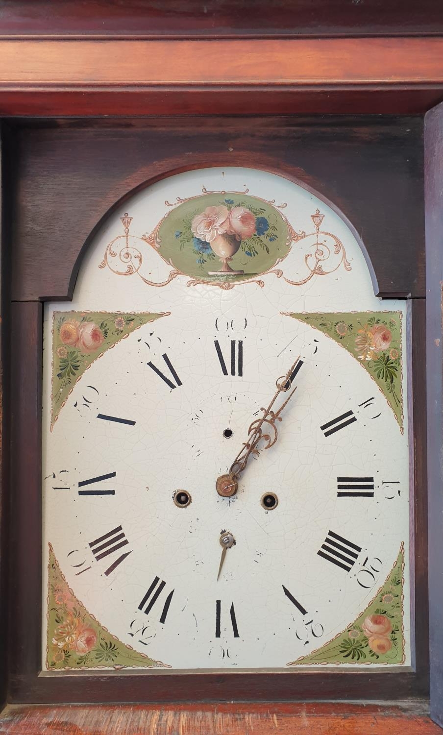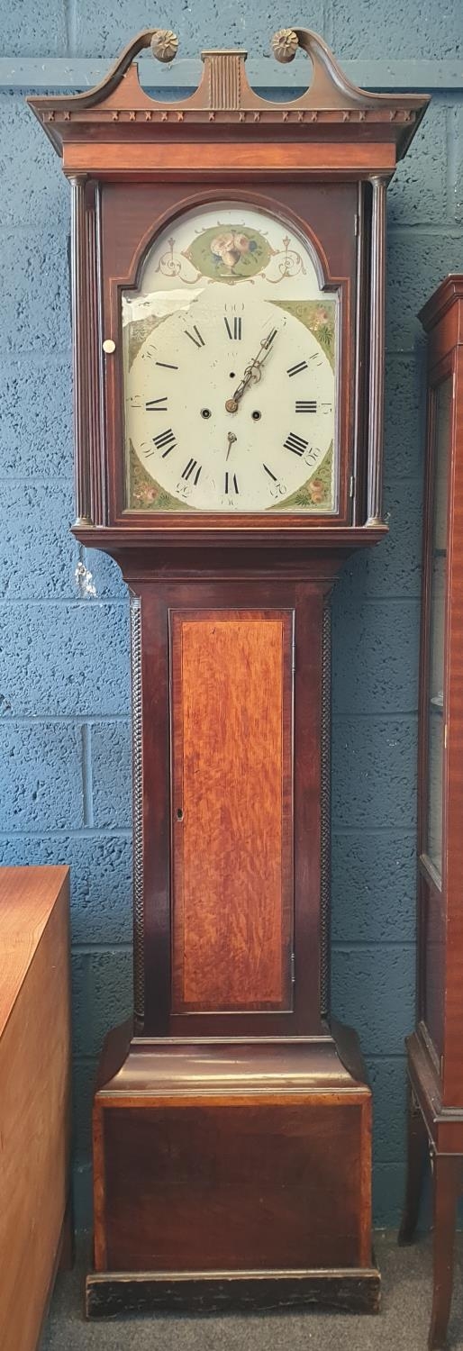 Mahogany Cased Grandfather Clock with Painted Dial Face, H:213 x W:61 x D:30cm