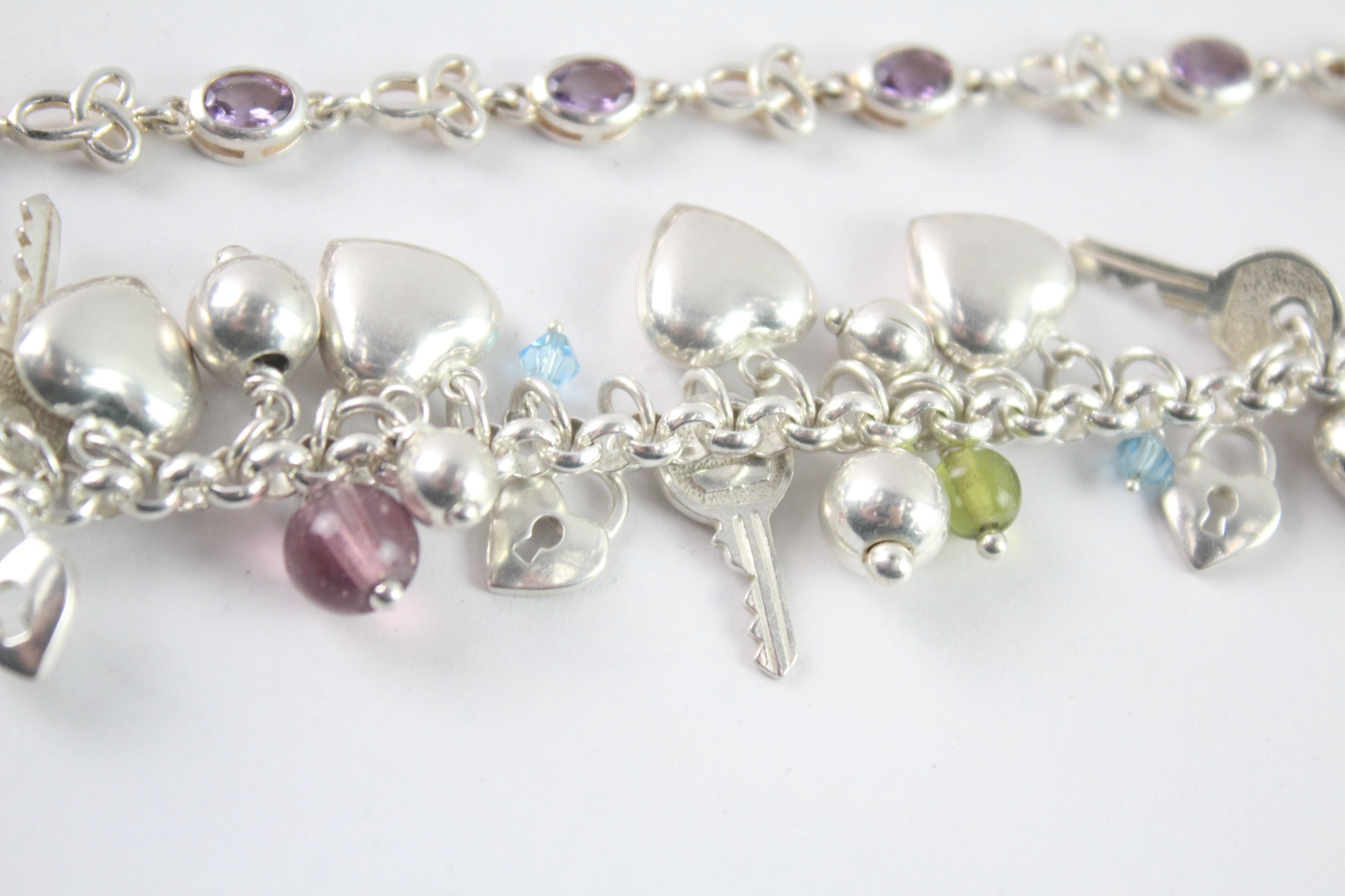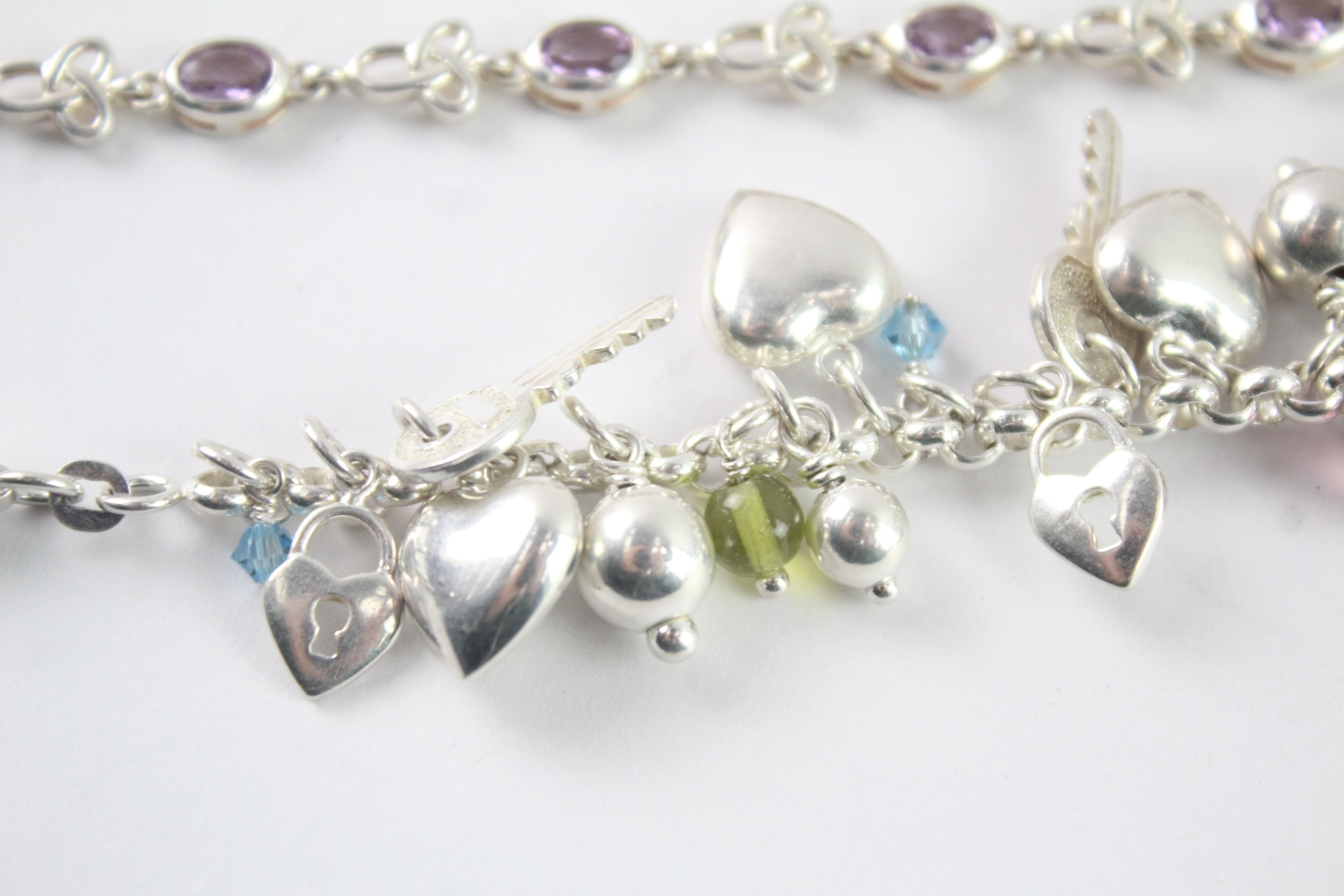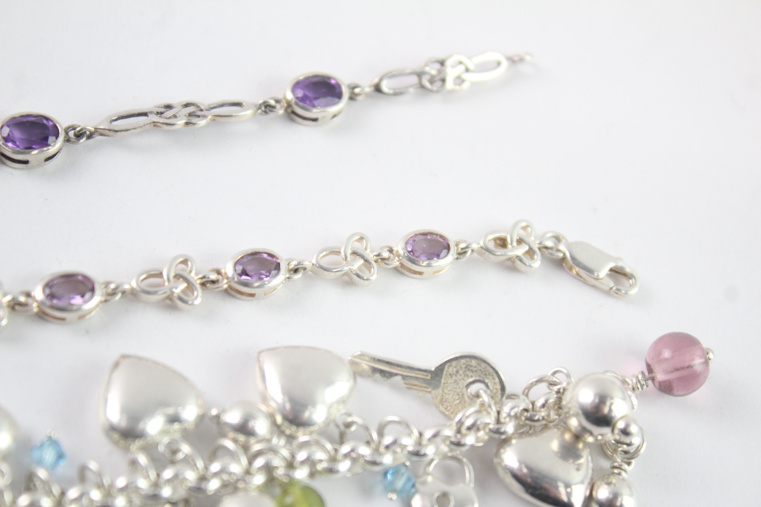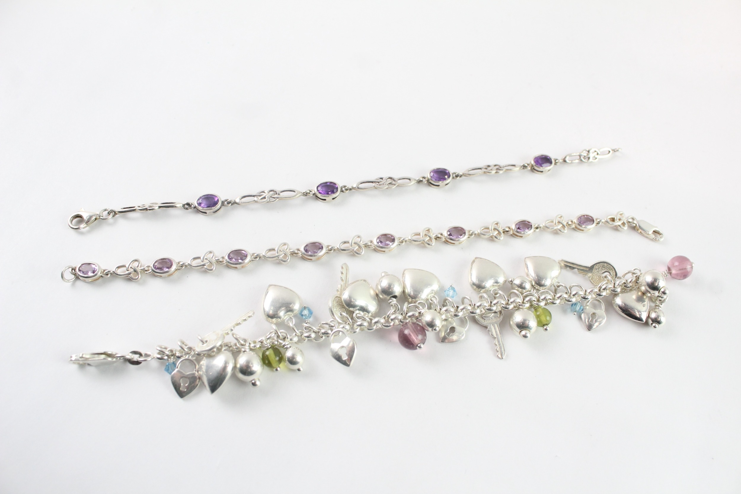 Collection of Sterling Silver Bracelets inc. Gemstone, Charm x 3 (55g)