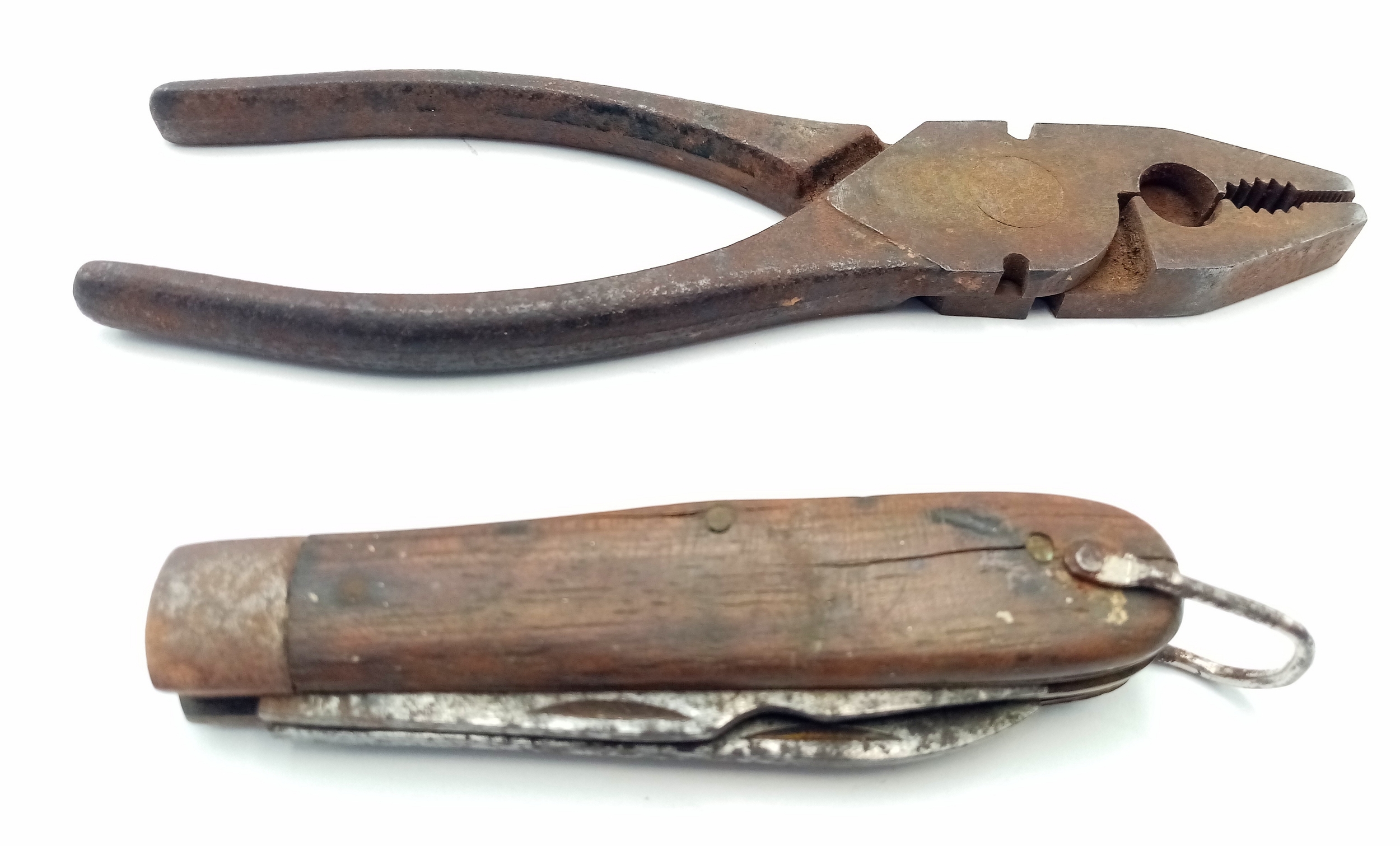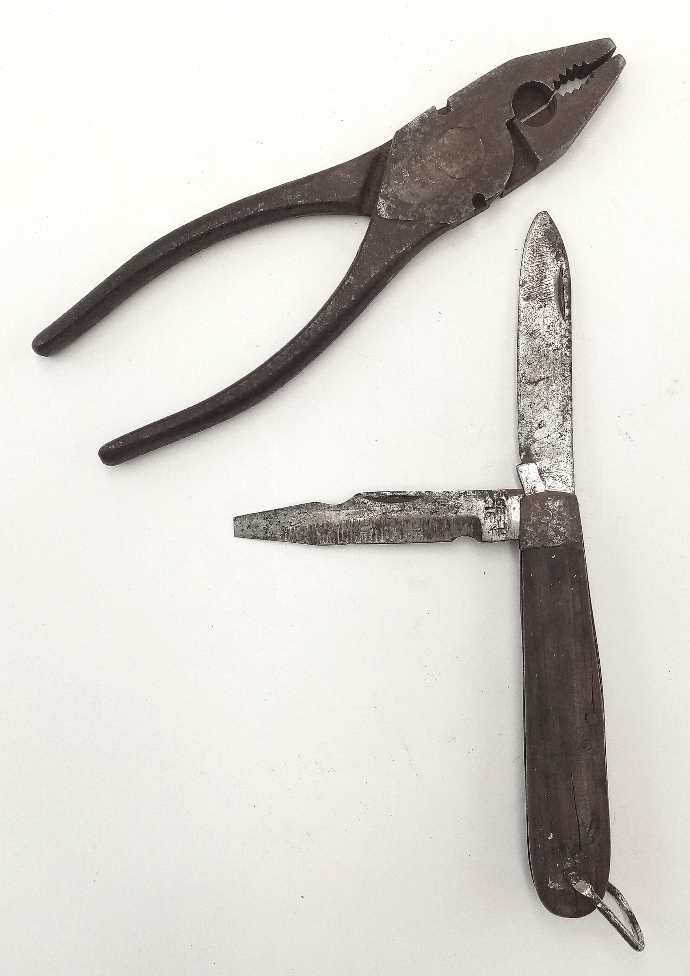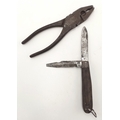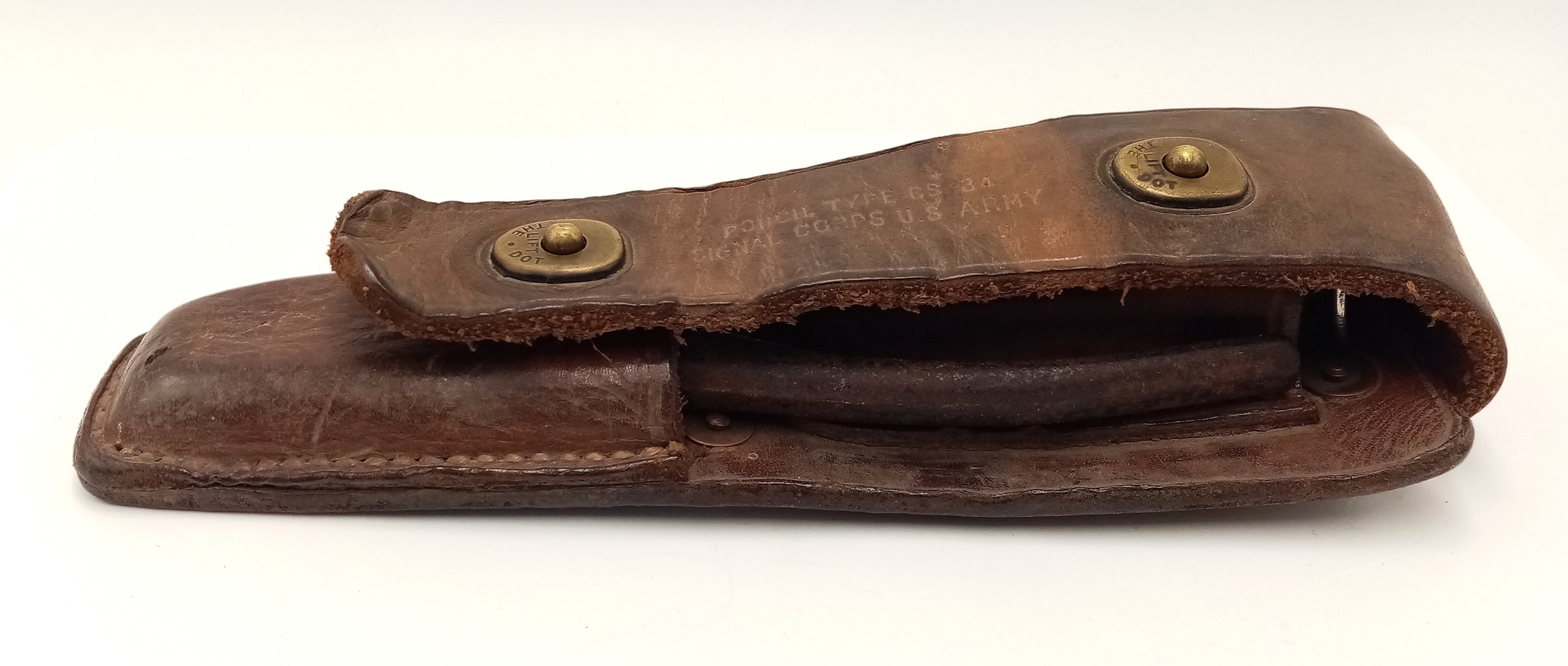 WW2 US Army Signal Corps Line Man’s Pliers & Multi Blade Knife in the leather CS-34 Pouch.