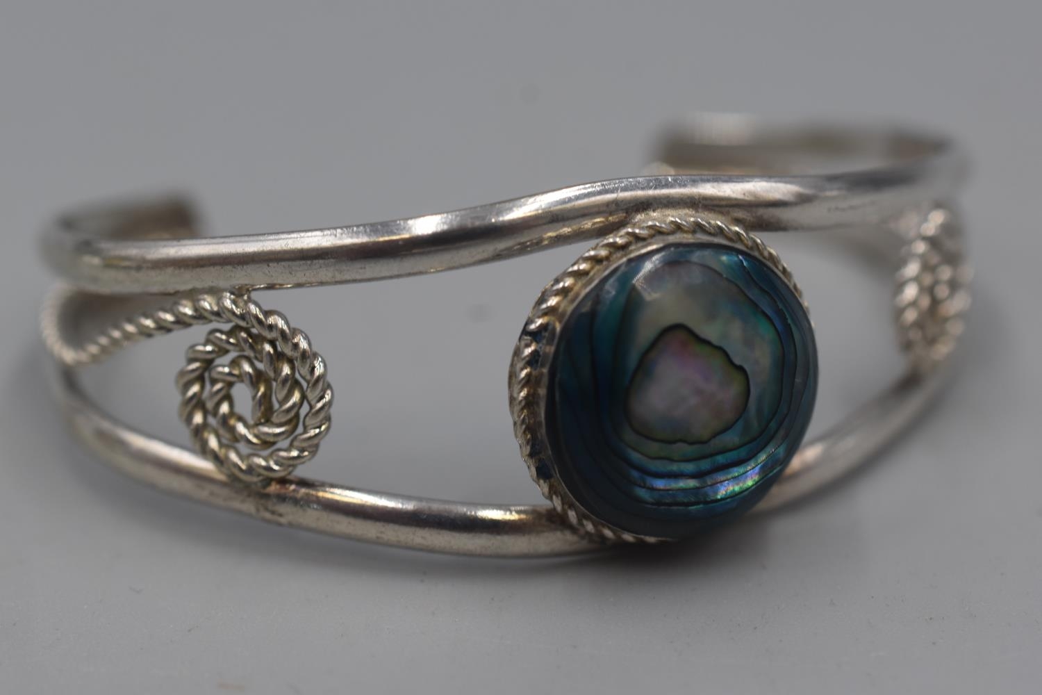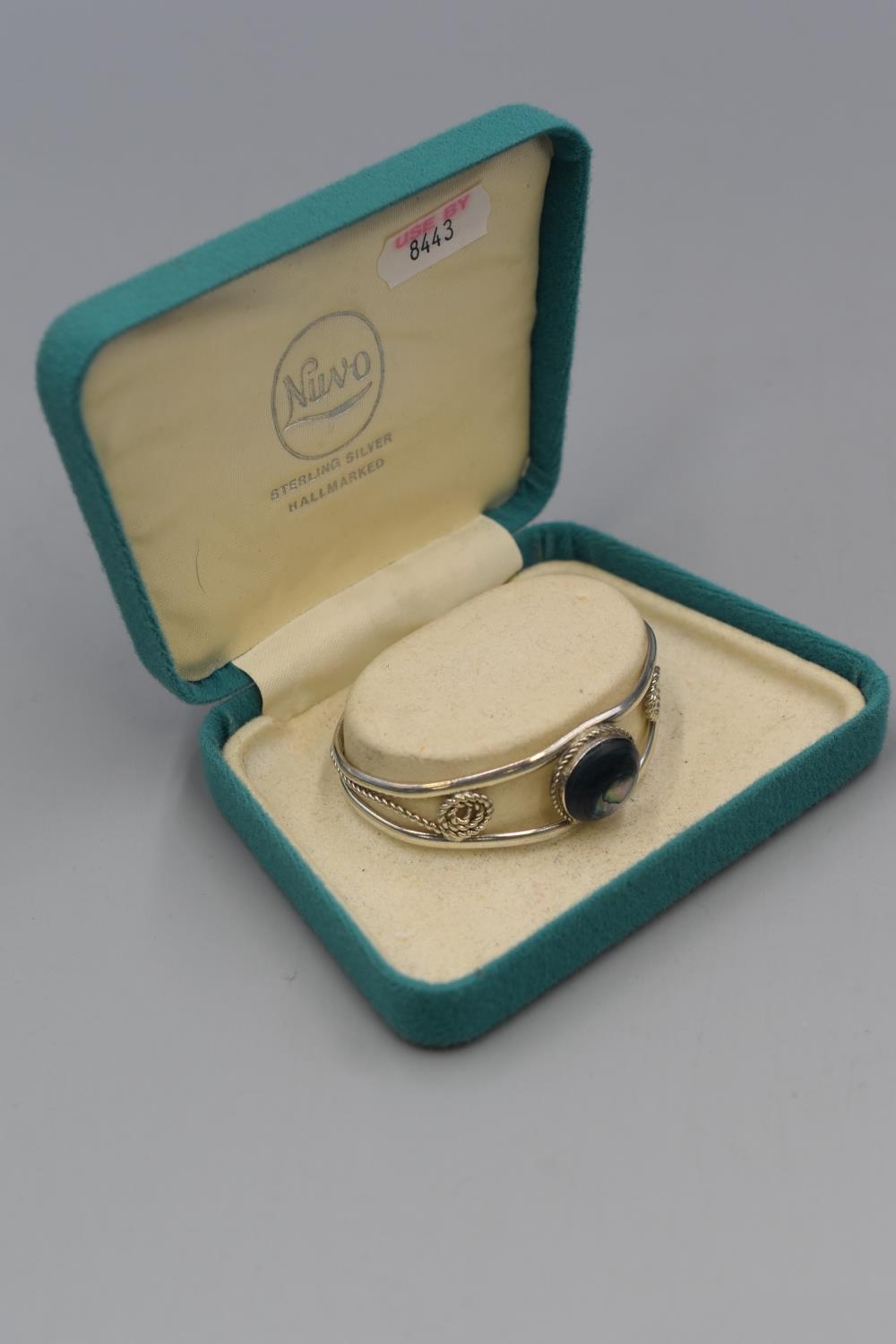 Mexican Silver Large Stoned Bangle Complete with Presentation Box