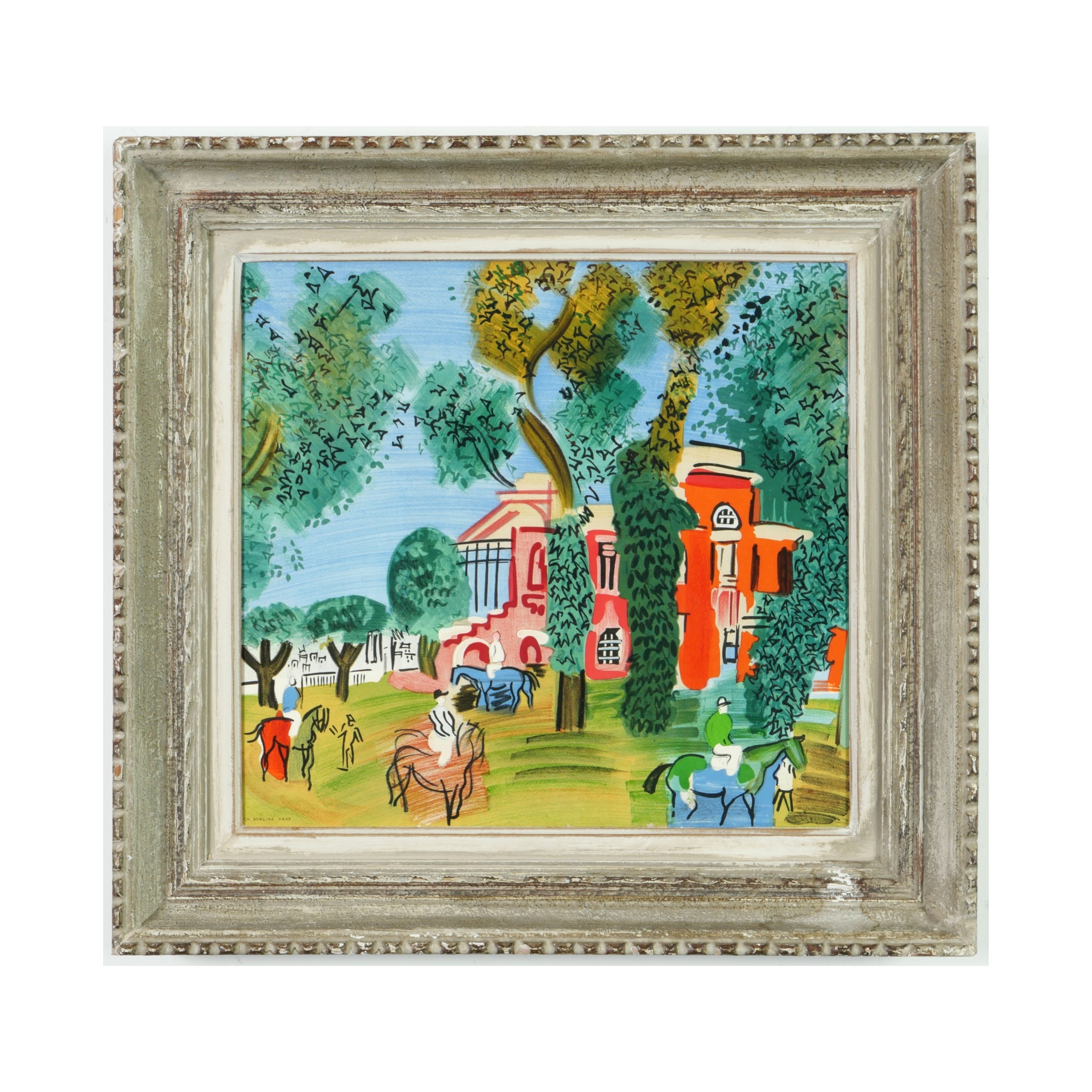 RAOUL DUFY. BORDEAUX LITHOGRAPH. printed by Mourlot of Paris in 1970, distressed French vintage frame, 42cm x 40cm.