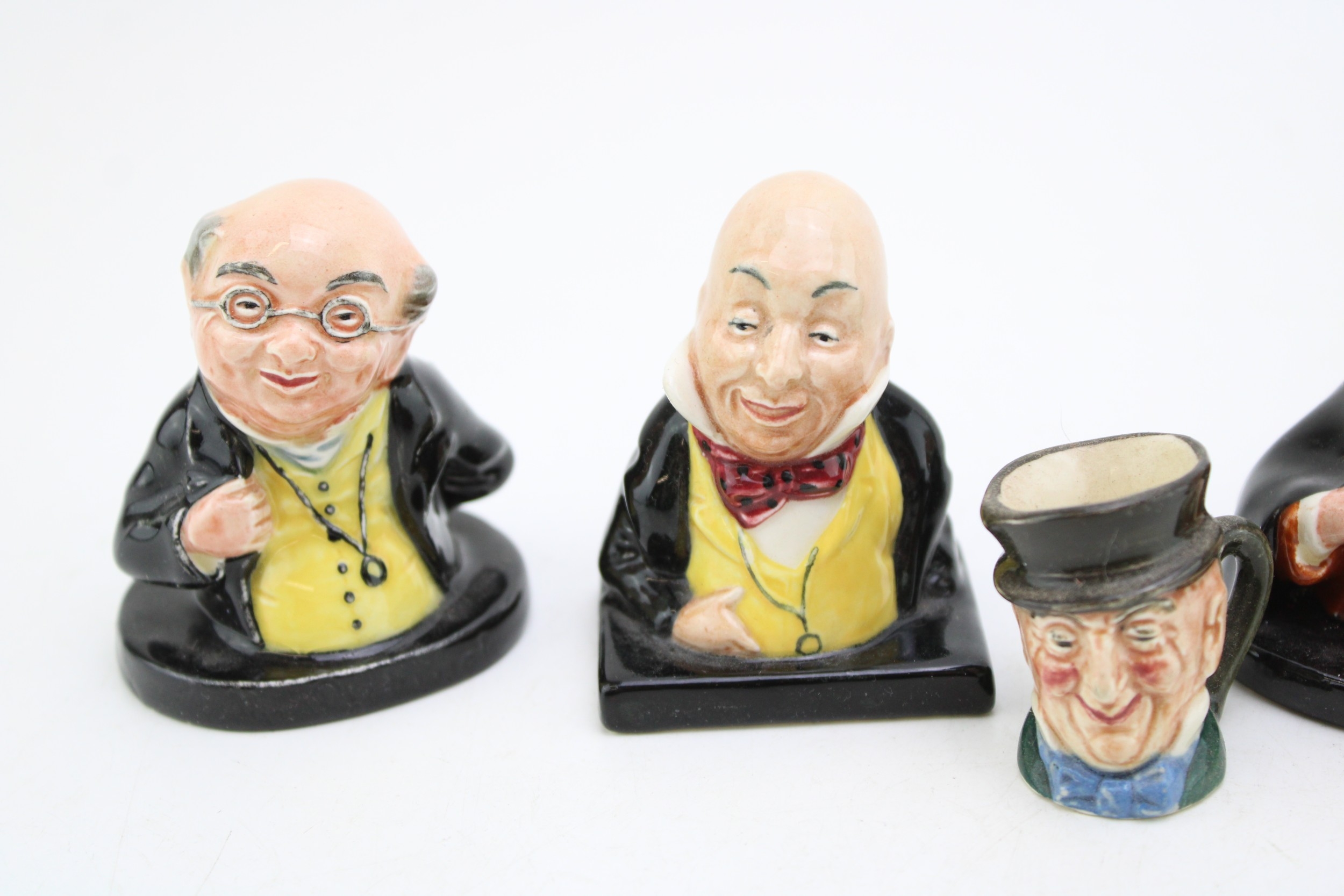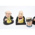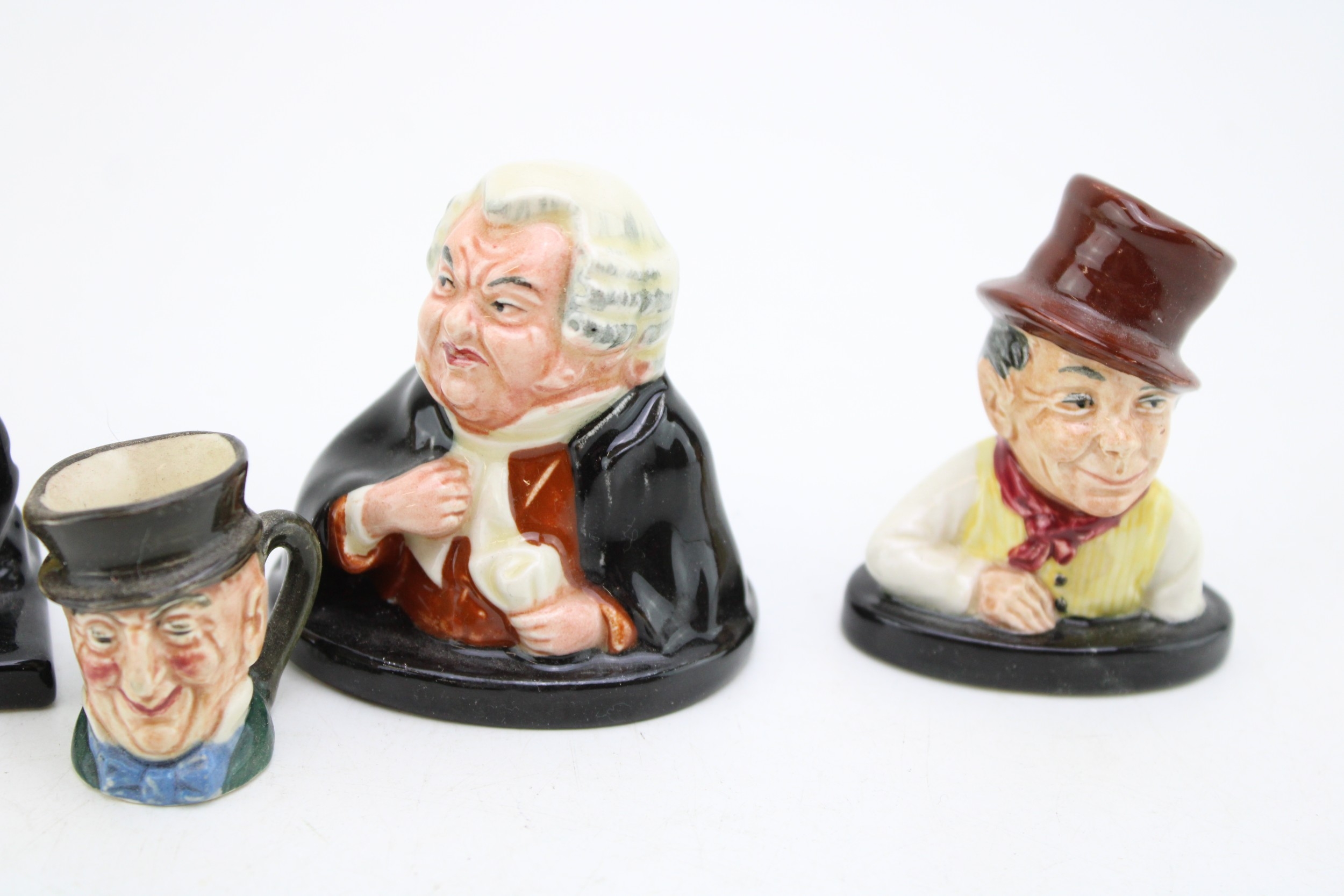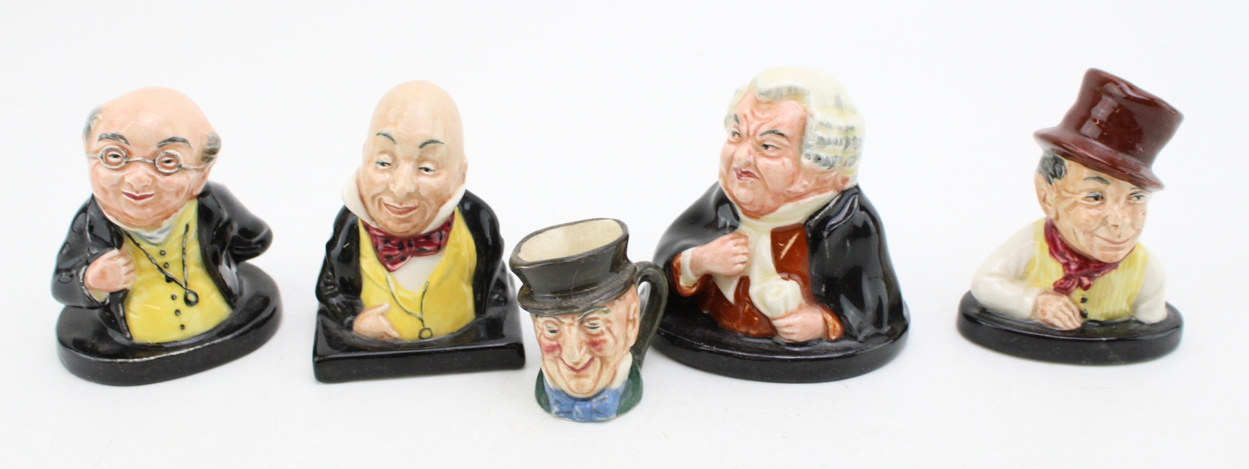 Royal Doulton Dickens busts to include Micawber, Buzfuz, Pickwick and Sam Weller with tiny Micawber jug (5).