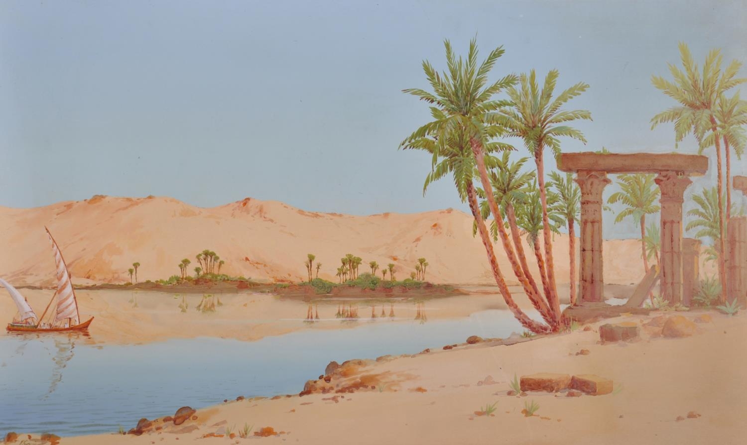 James Greig (1861-1941) British A View on the Nile, Watercolour, Signed, Unframed, 12” x 19.5” (30.5 x 49.5cm) together with four Middle Eastern Watercolours, five (5)