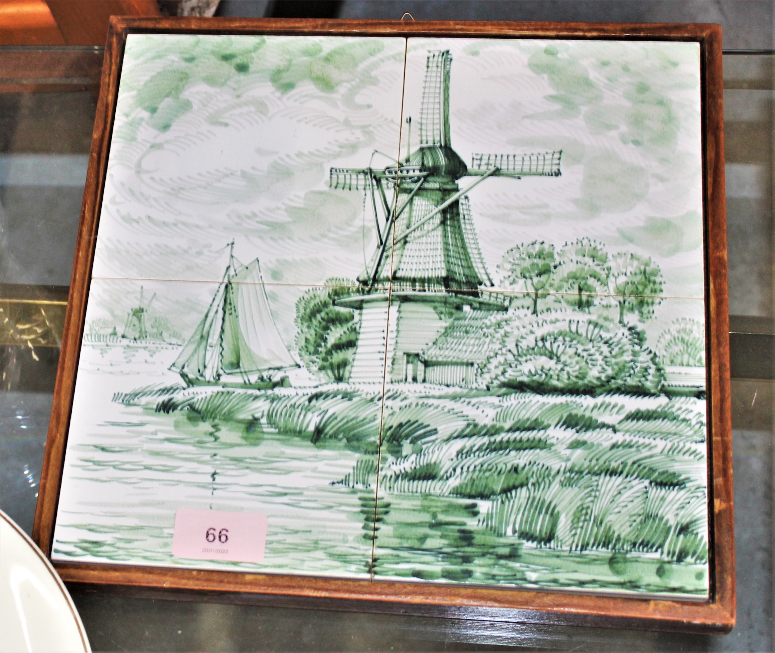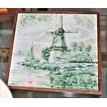 Wall-Hanging Framed Set of Tiles depicting a Windmill Scene