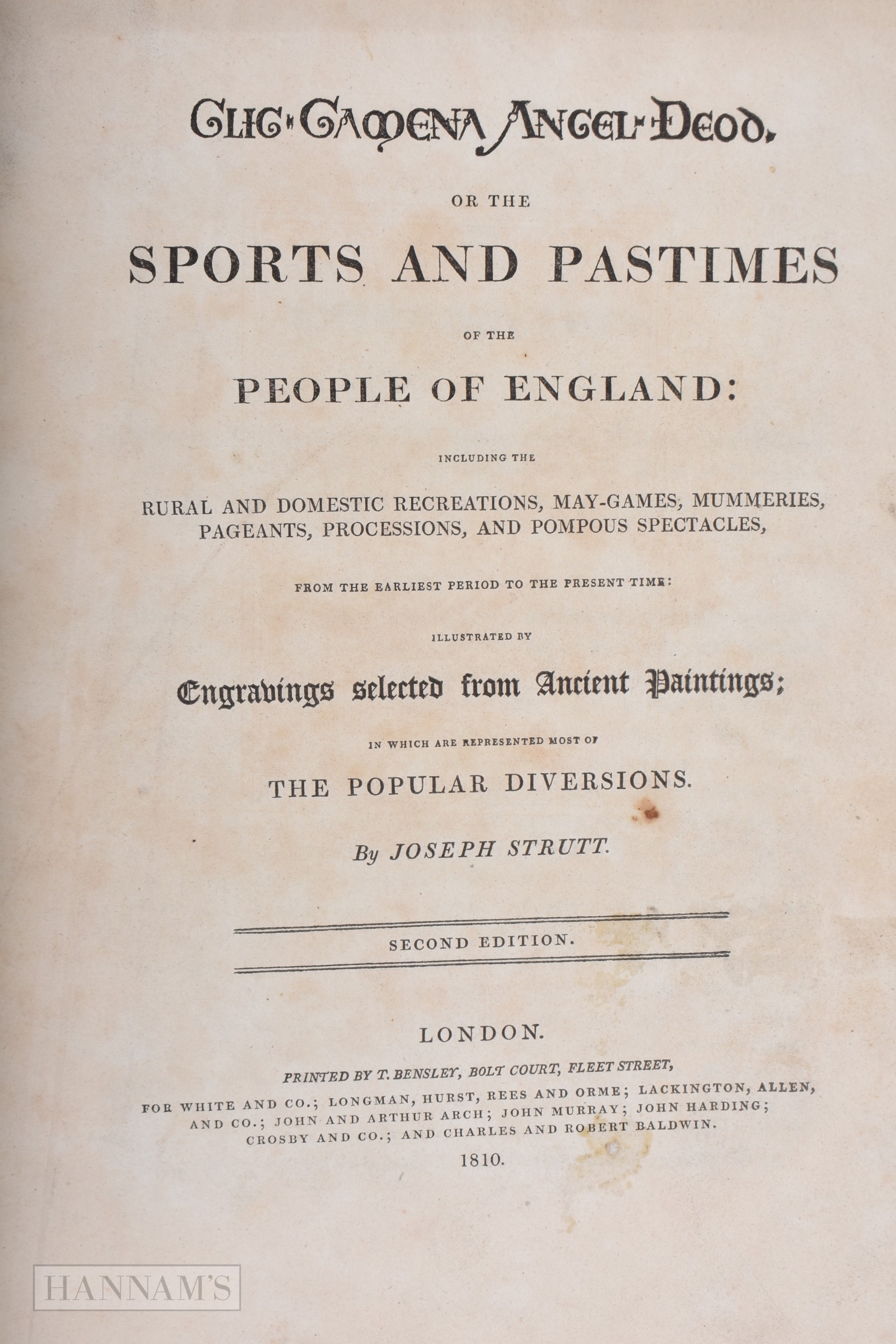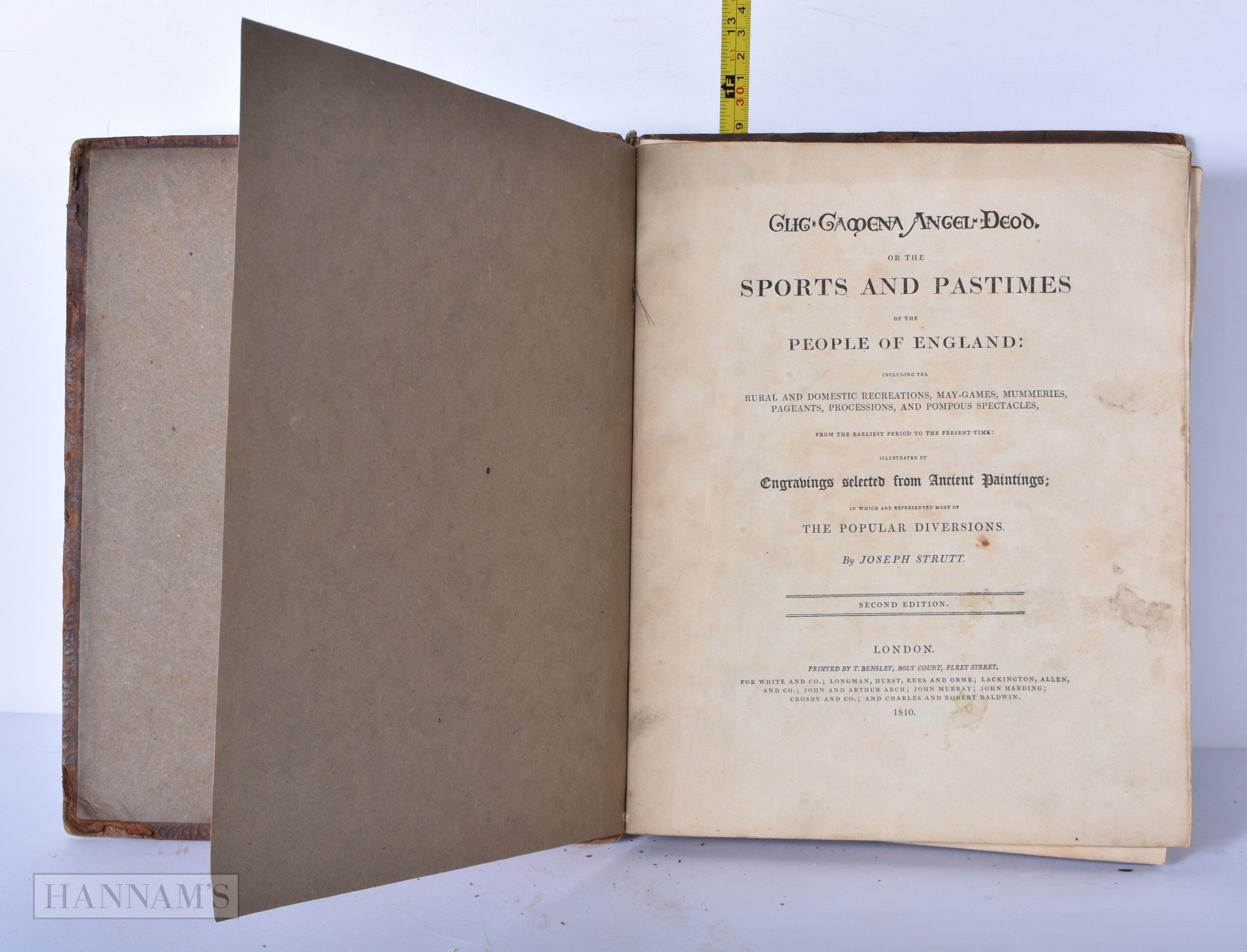Glig Gamena Angel-Deod, translated to The Sports and Pastimes of the People of England book, leather bound 2nd Edition 1810. 30 x 24cm.