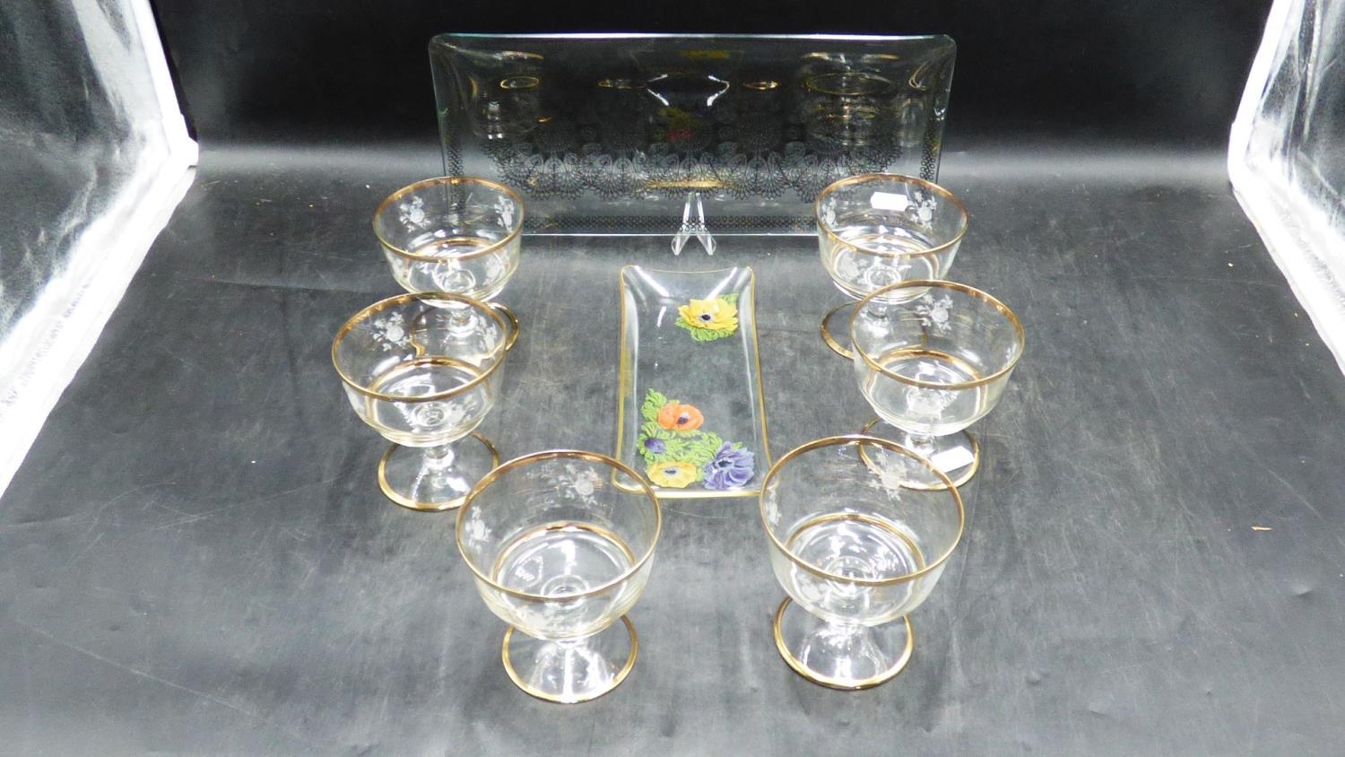 Set of 6 Cocktail Glasses and two Retro Serving Trays