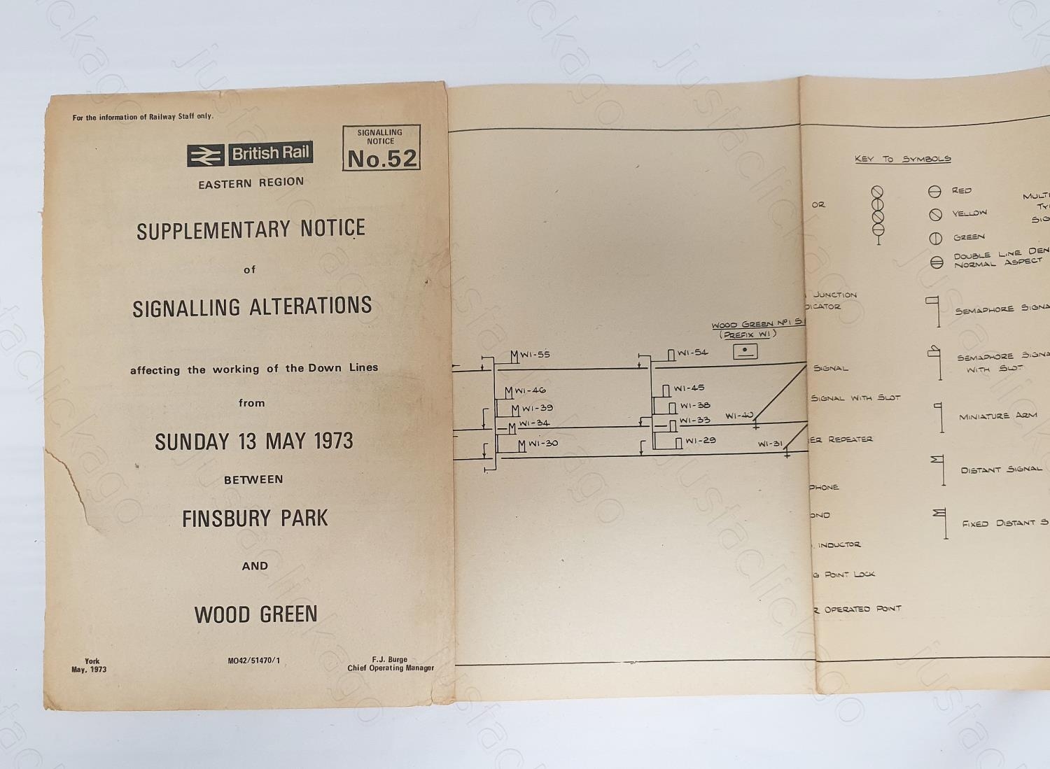 Railway. A B.R. Eastern Region Supplementary Notice of Signalling and Permanent Way Alterations between Finsbury Park and Wood Green. May 1973. With good sized associated fold out signalling diagram.