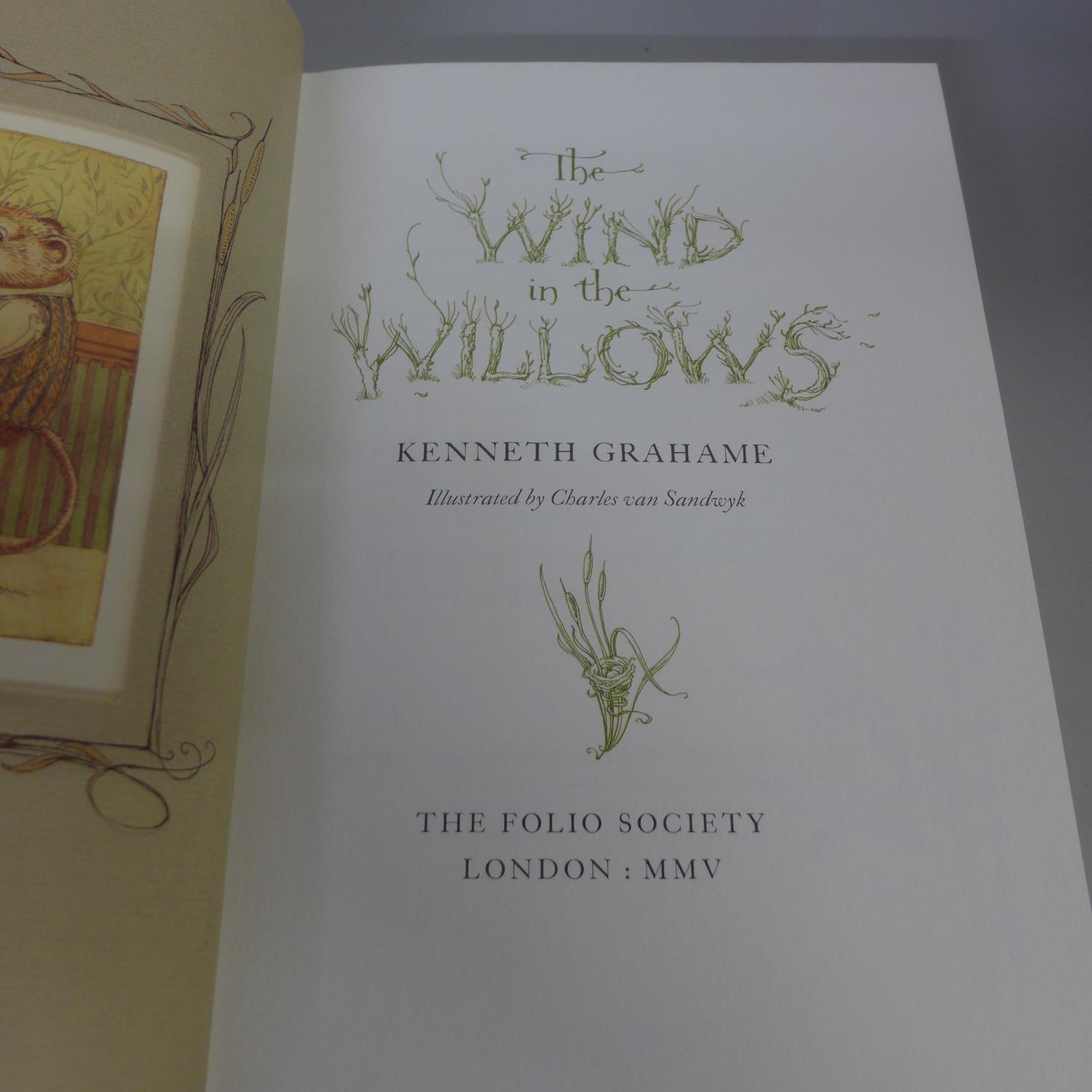 Three Folio Society books including The Wind in the Willows