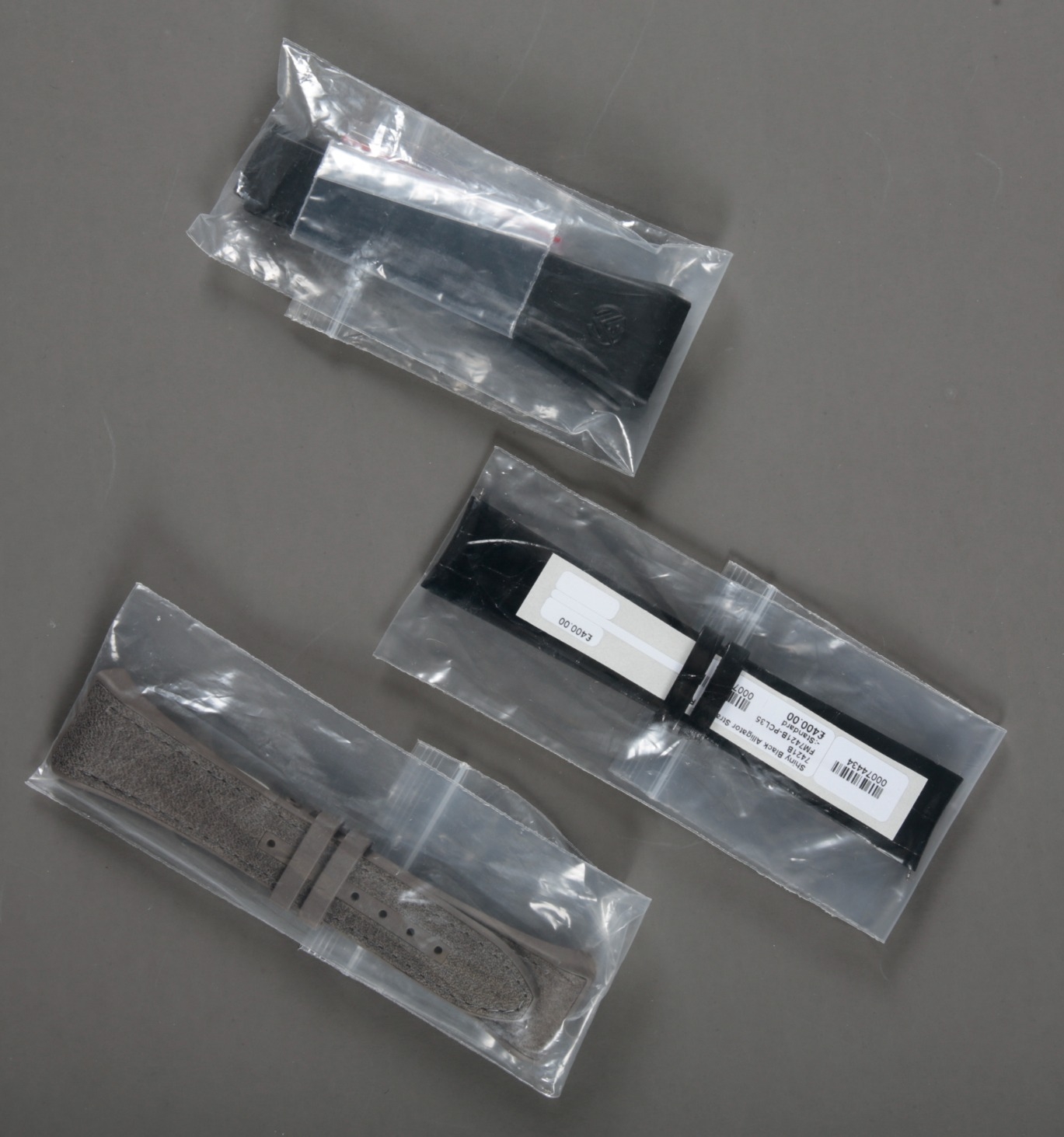 V41, in its original packaging, old shop stock; together with two other Franck Muller watch straps, in original packaging, old shop stock (3)