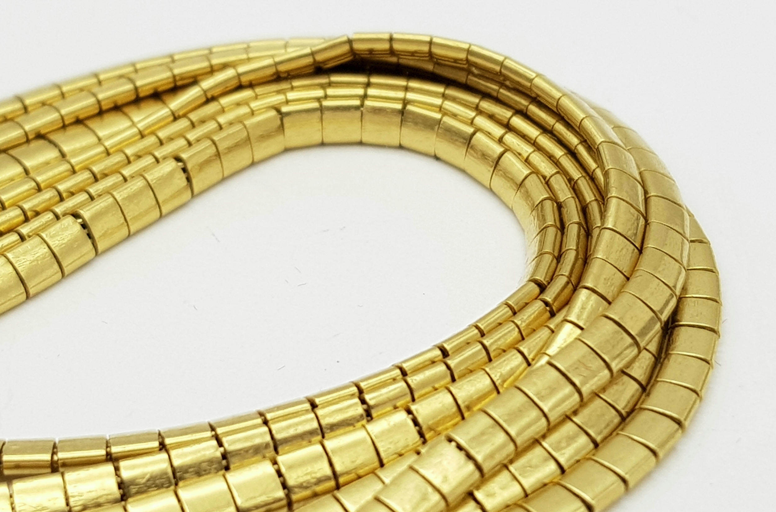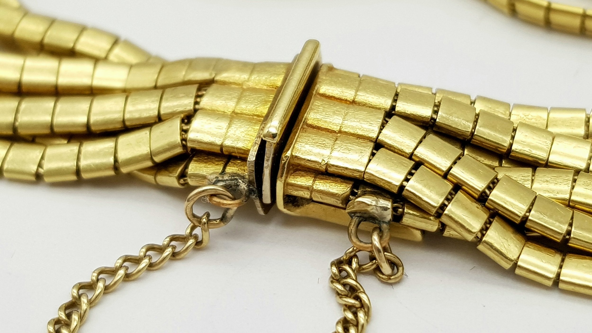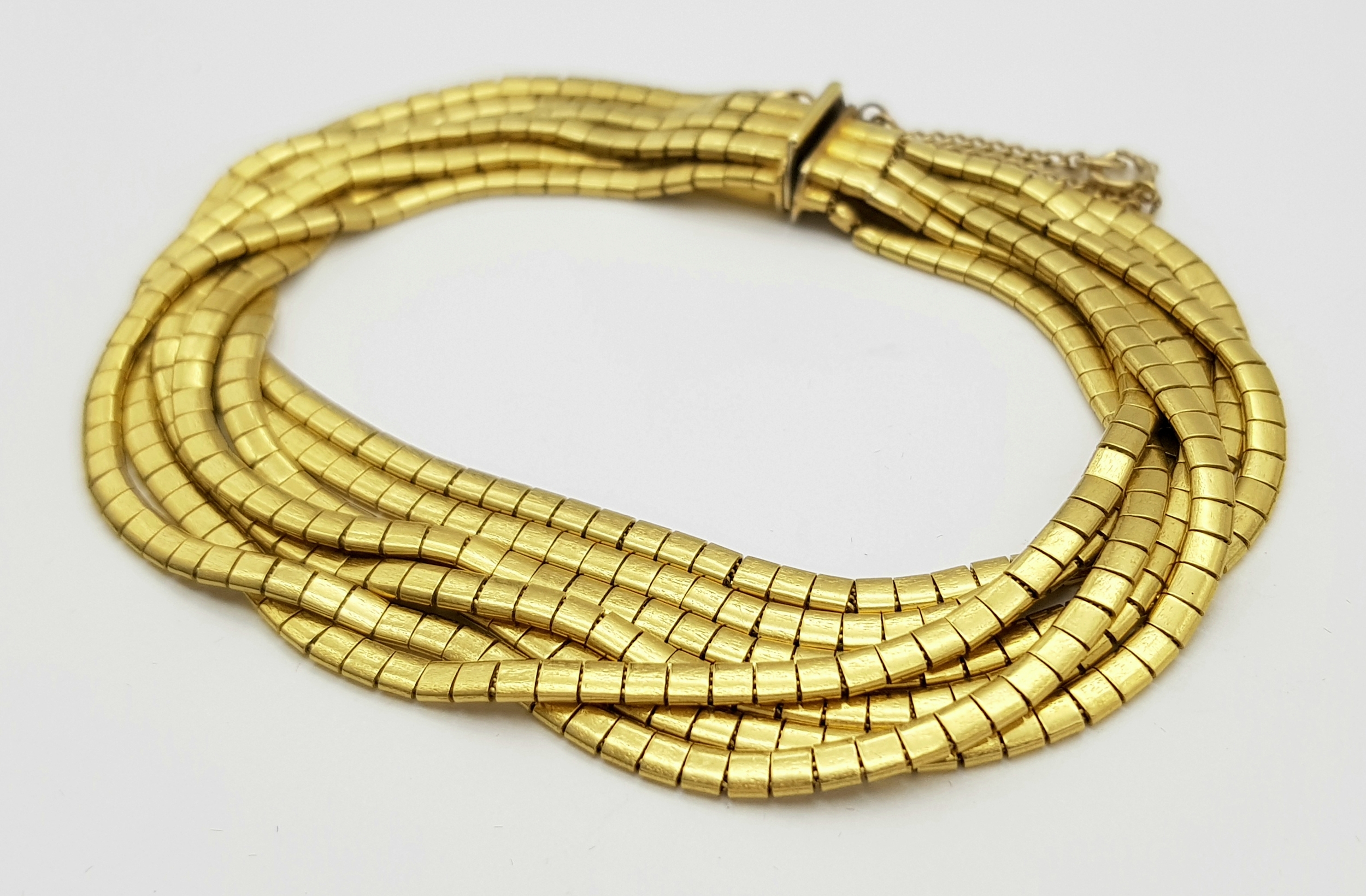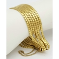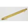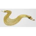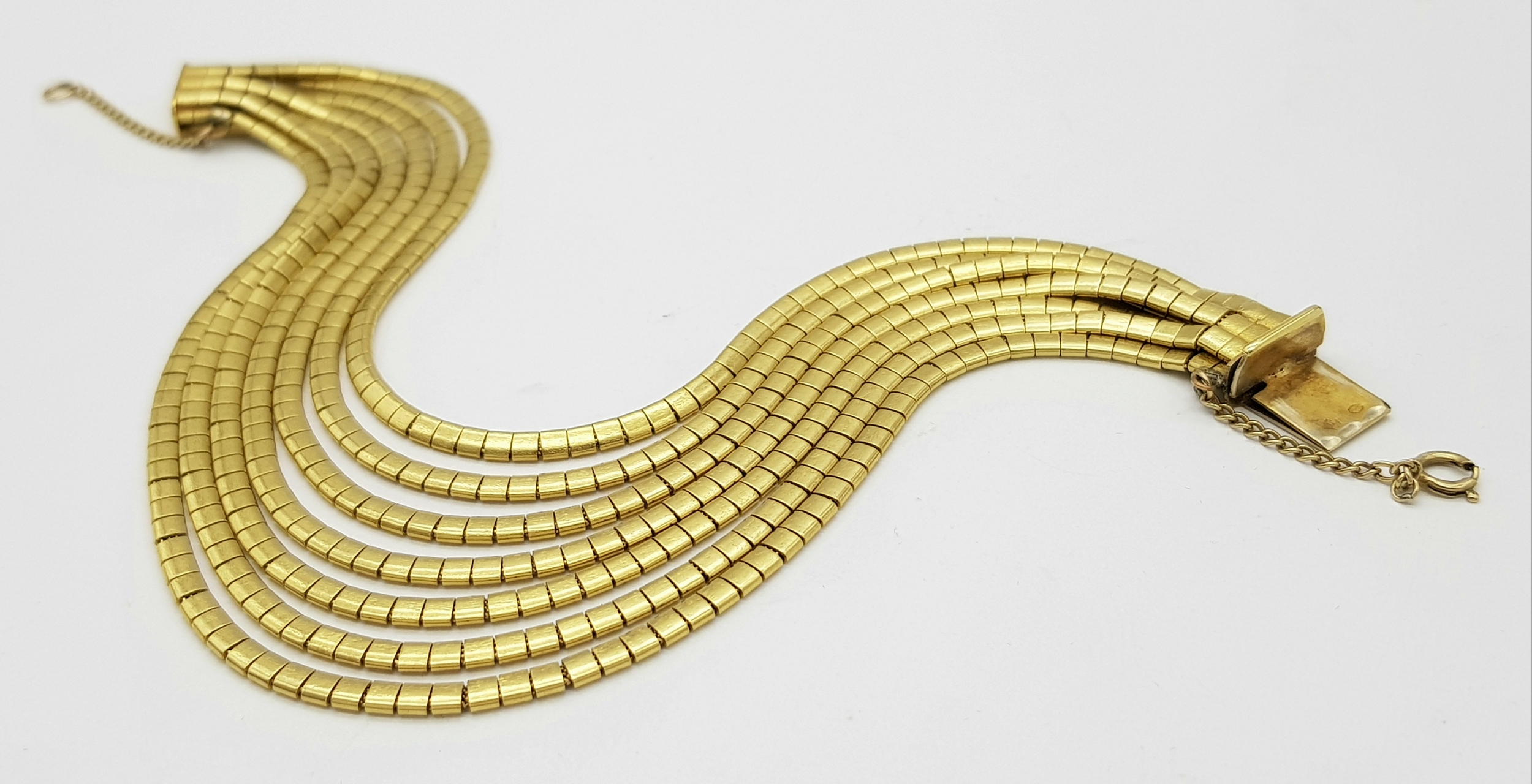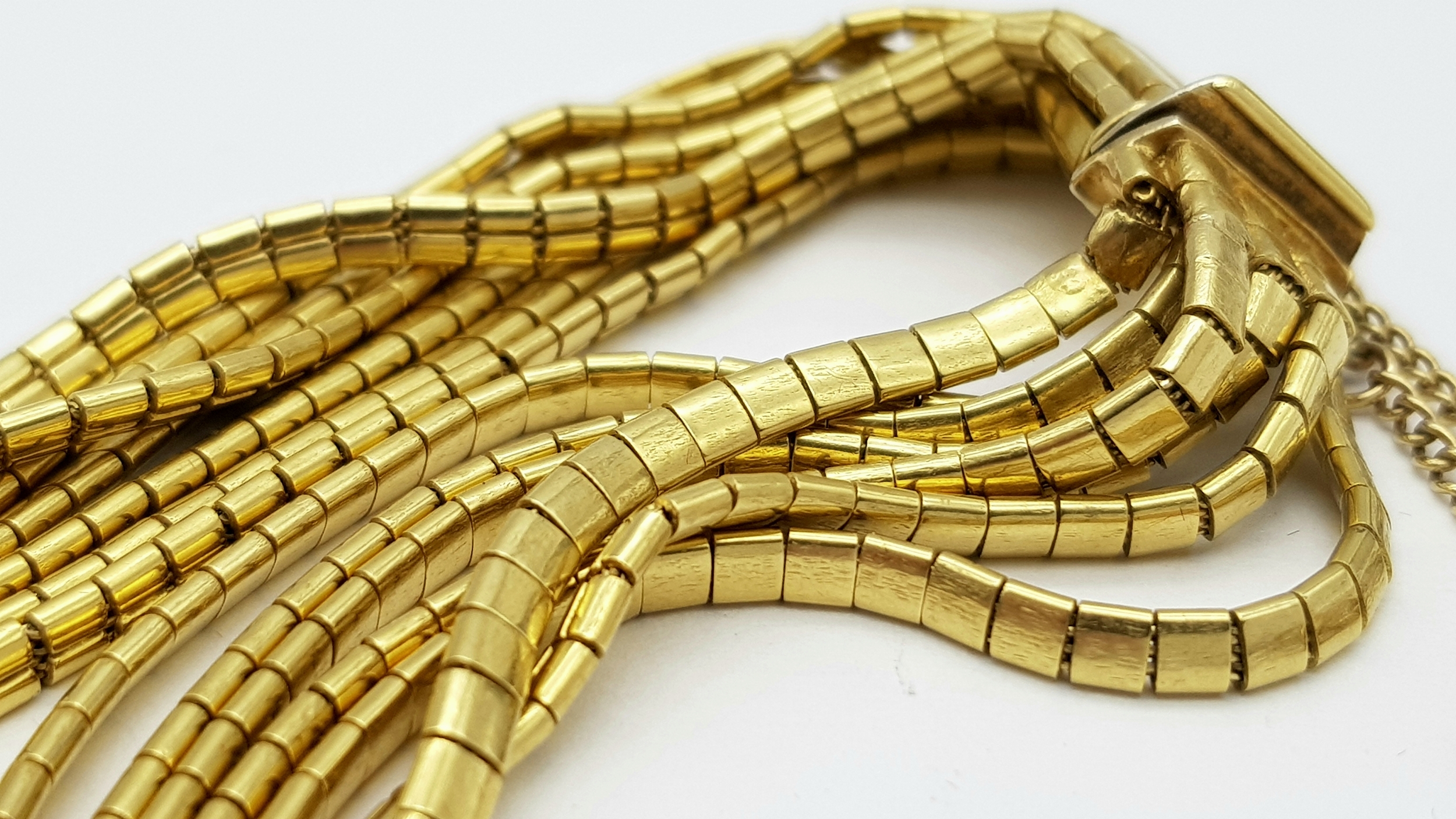A Beautiful 18K Yellow Gold (tested) Seven Strand Link Bracelet. Clip open design with safety chain. 18cm. 48.2g.