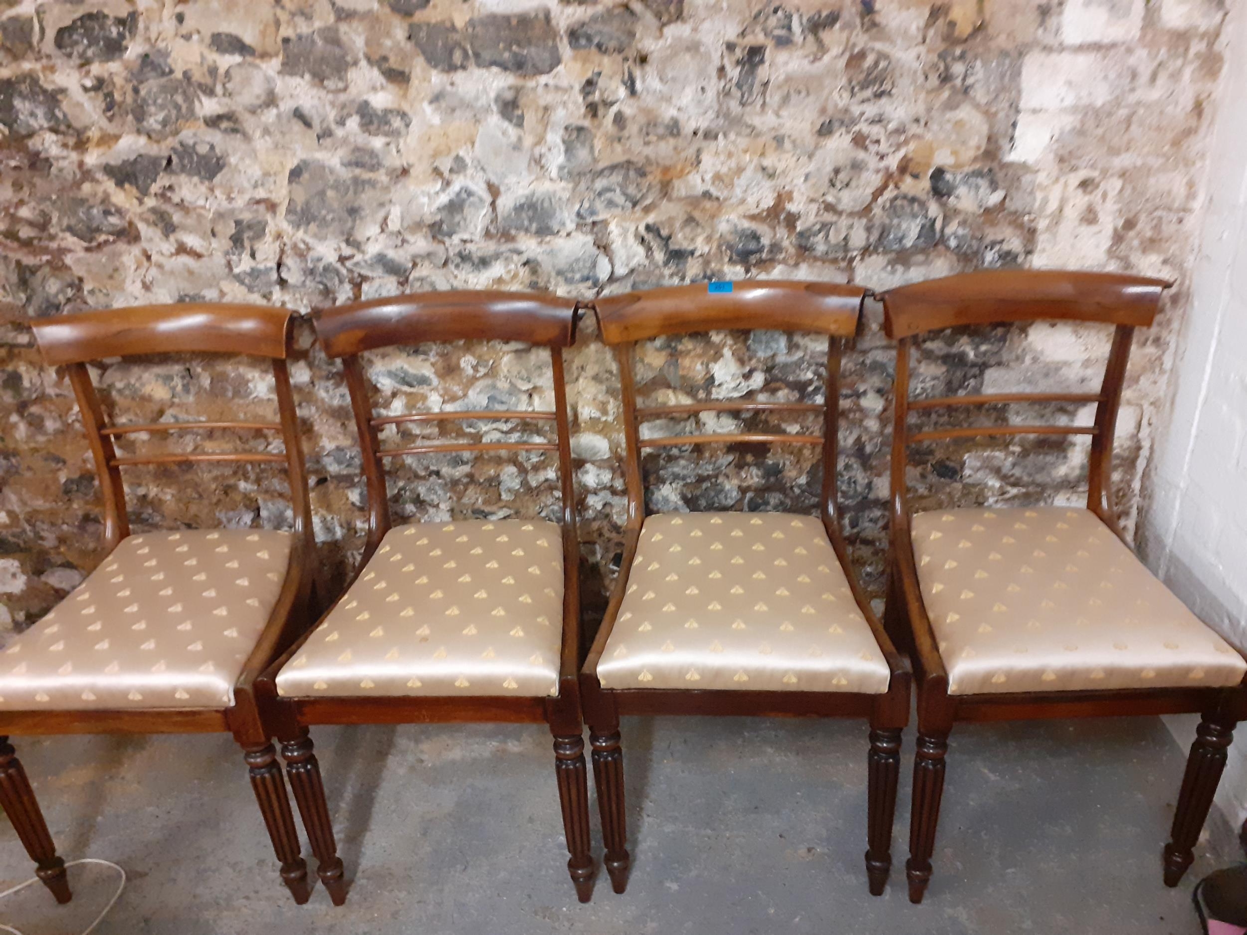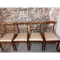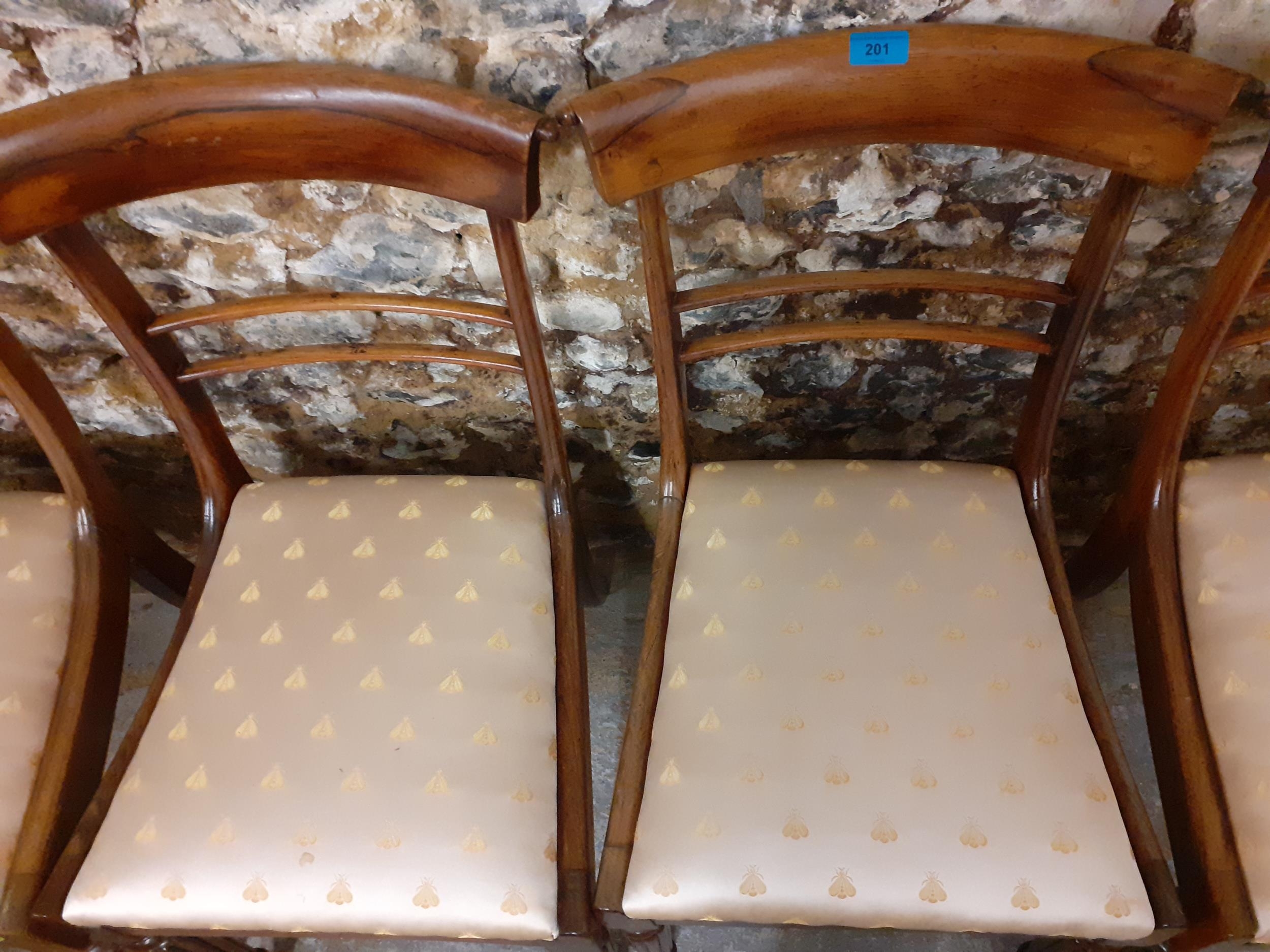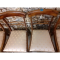 Four rosewood chairs with drop seats having a gold coloured upholstery with wasp design