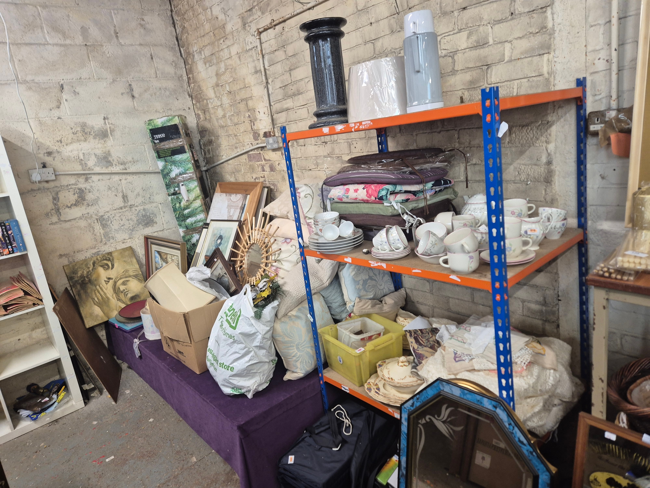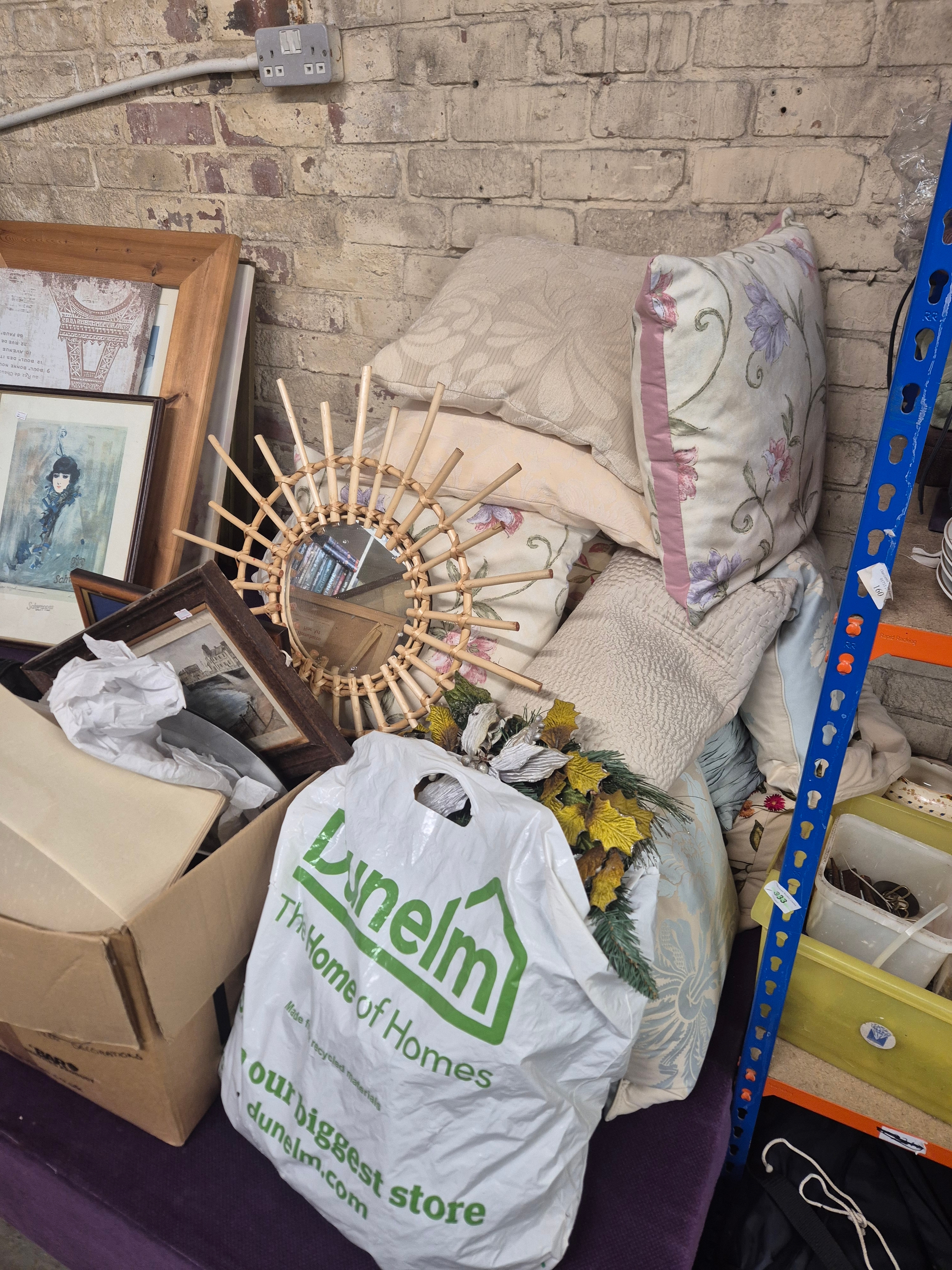 Very large mixed lot to include lightbulbs, china, cushions, pictures, mirrors (enough to fill a small car)