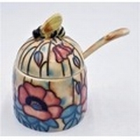 OLD TUPTON WARE TUBELINED HONEY POT And SPOON (Product Code 1359) IN THE YELLOW POPPY DESIGN (As New , Original Box)