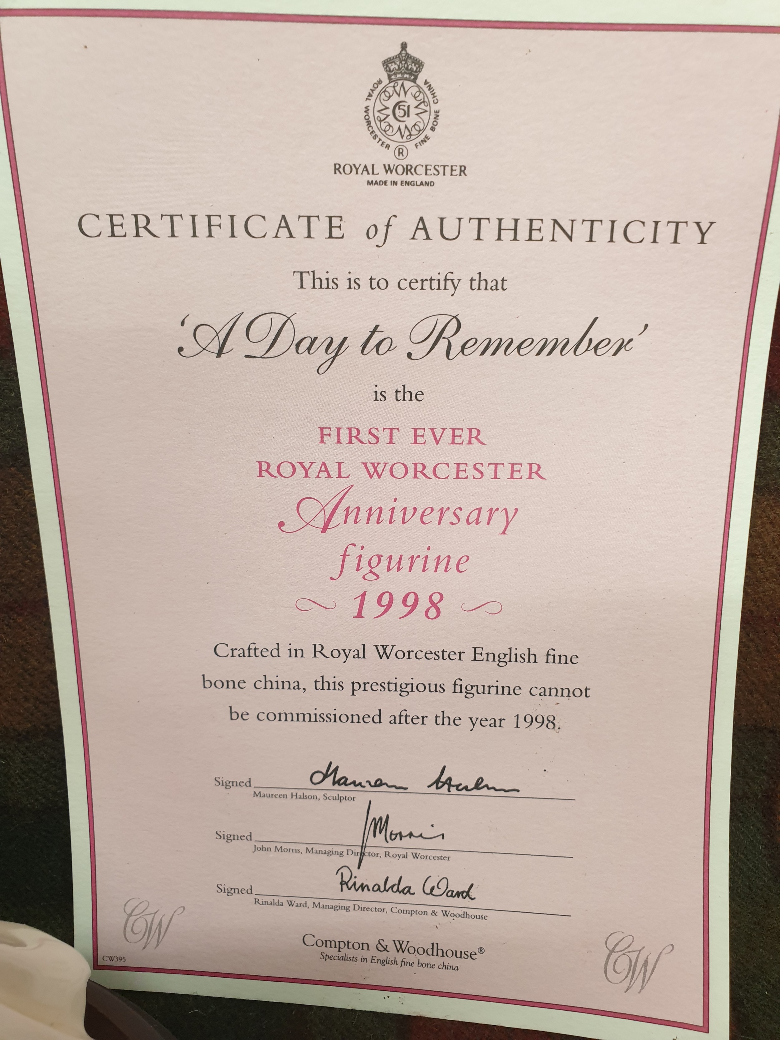 Royal Worcester Anniversary Figure a Day To Remember with Certificate & Wood Plinth