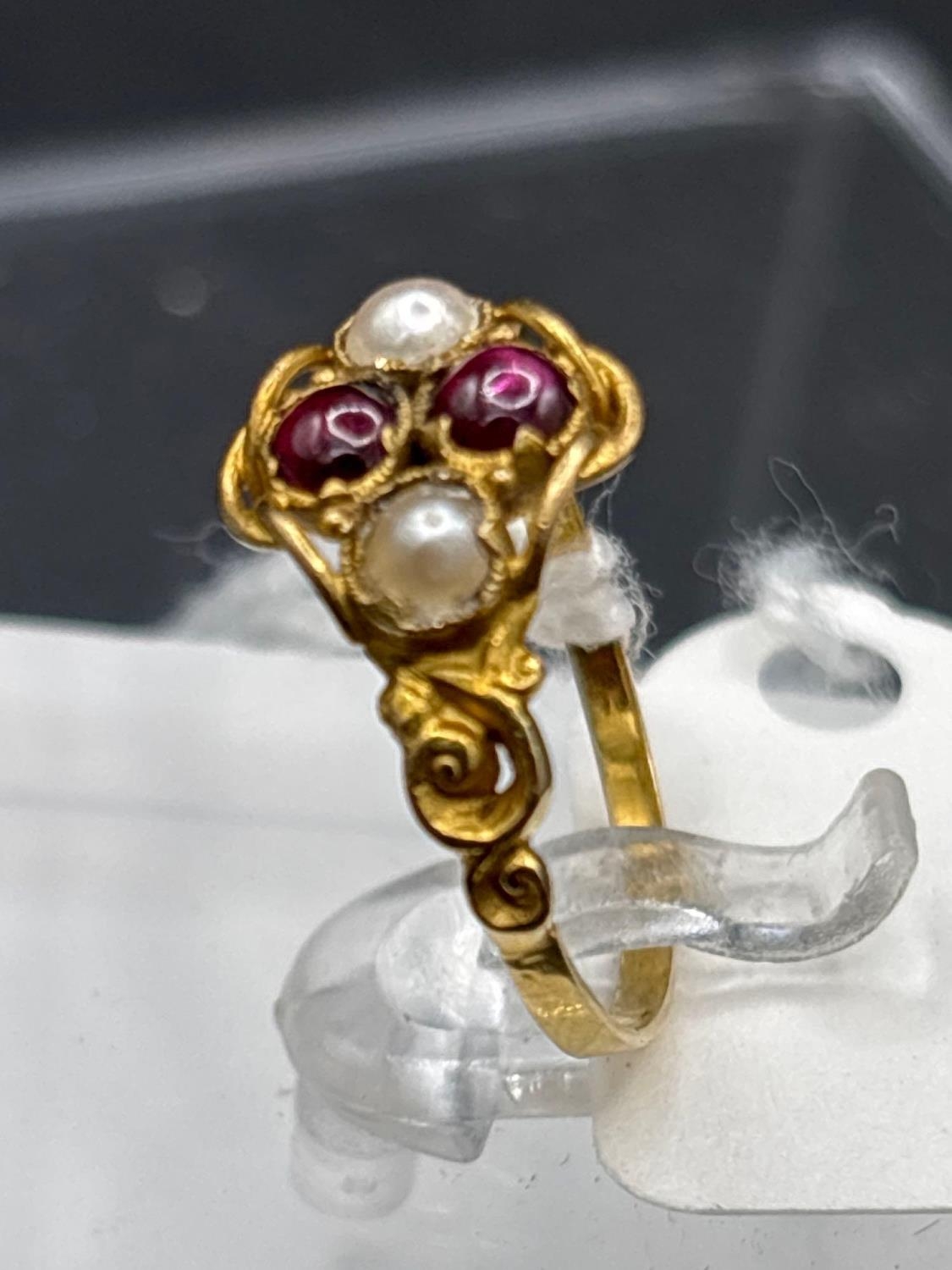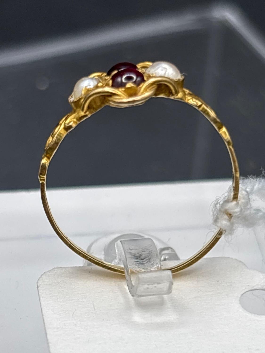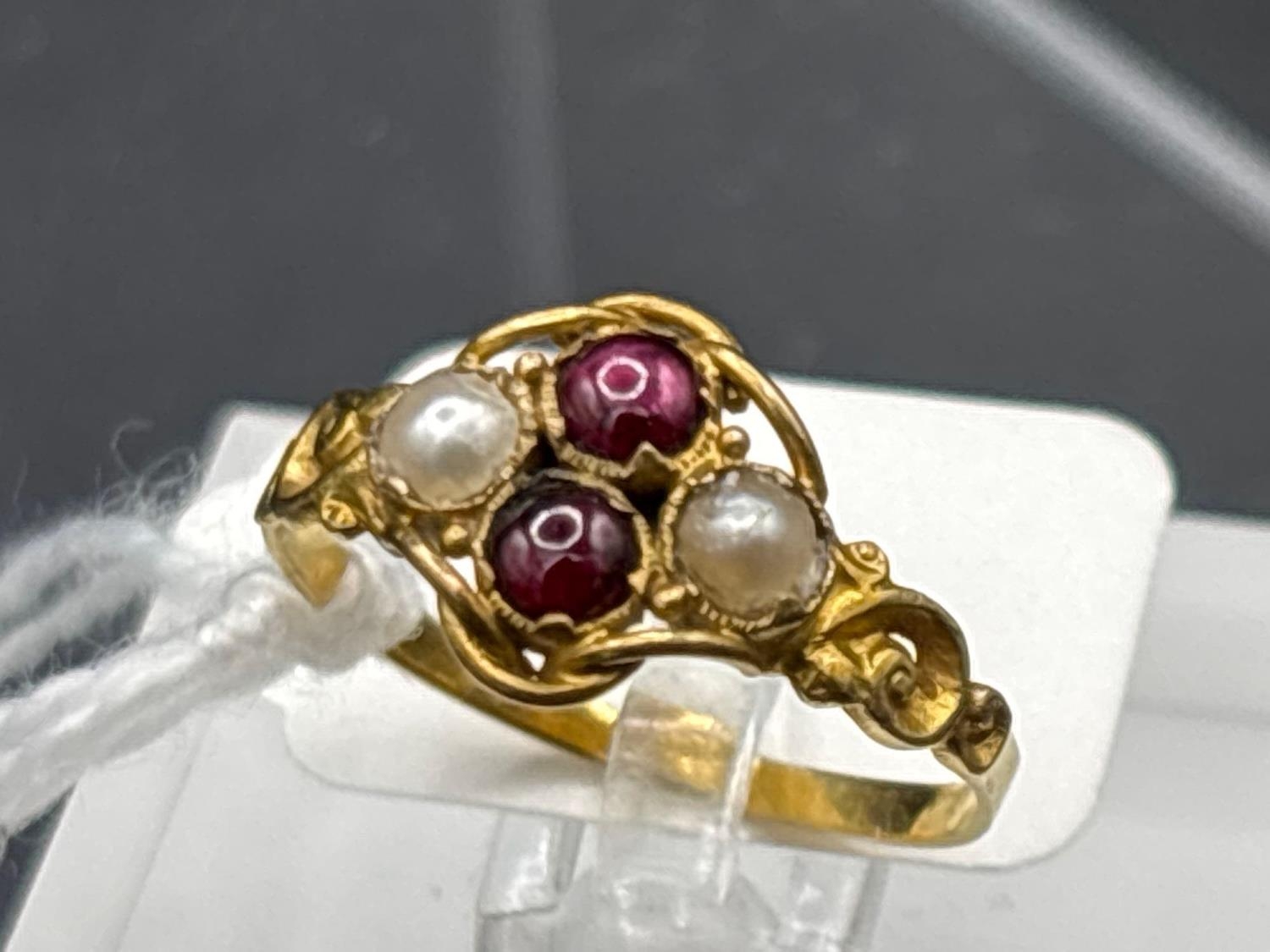 A Victorian cabochon garnet and pearl cluster ring size L 15ct gold tested