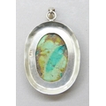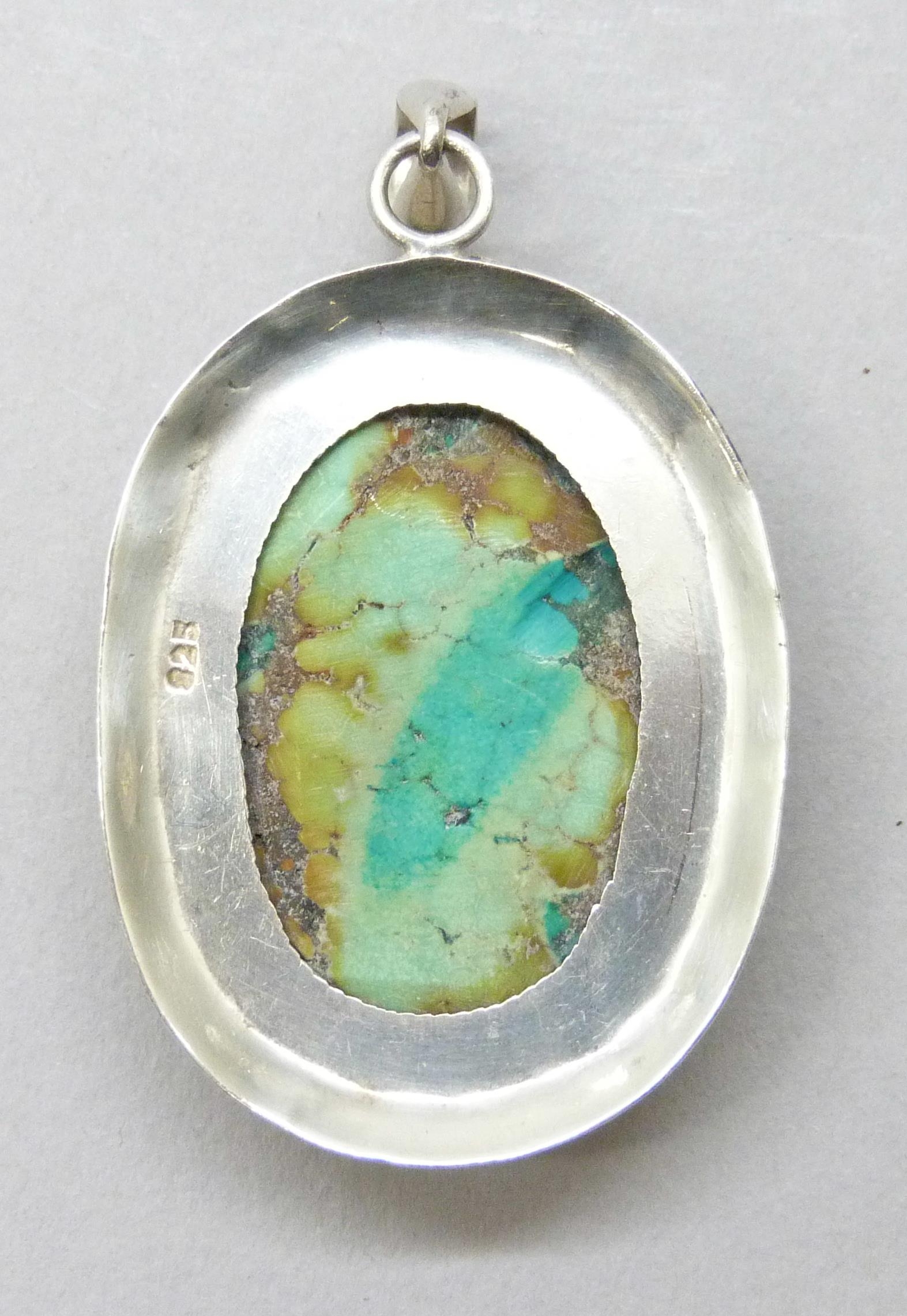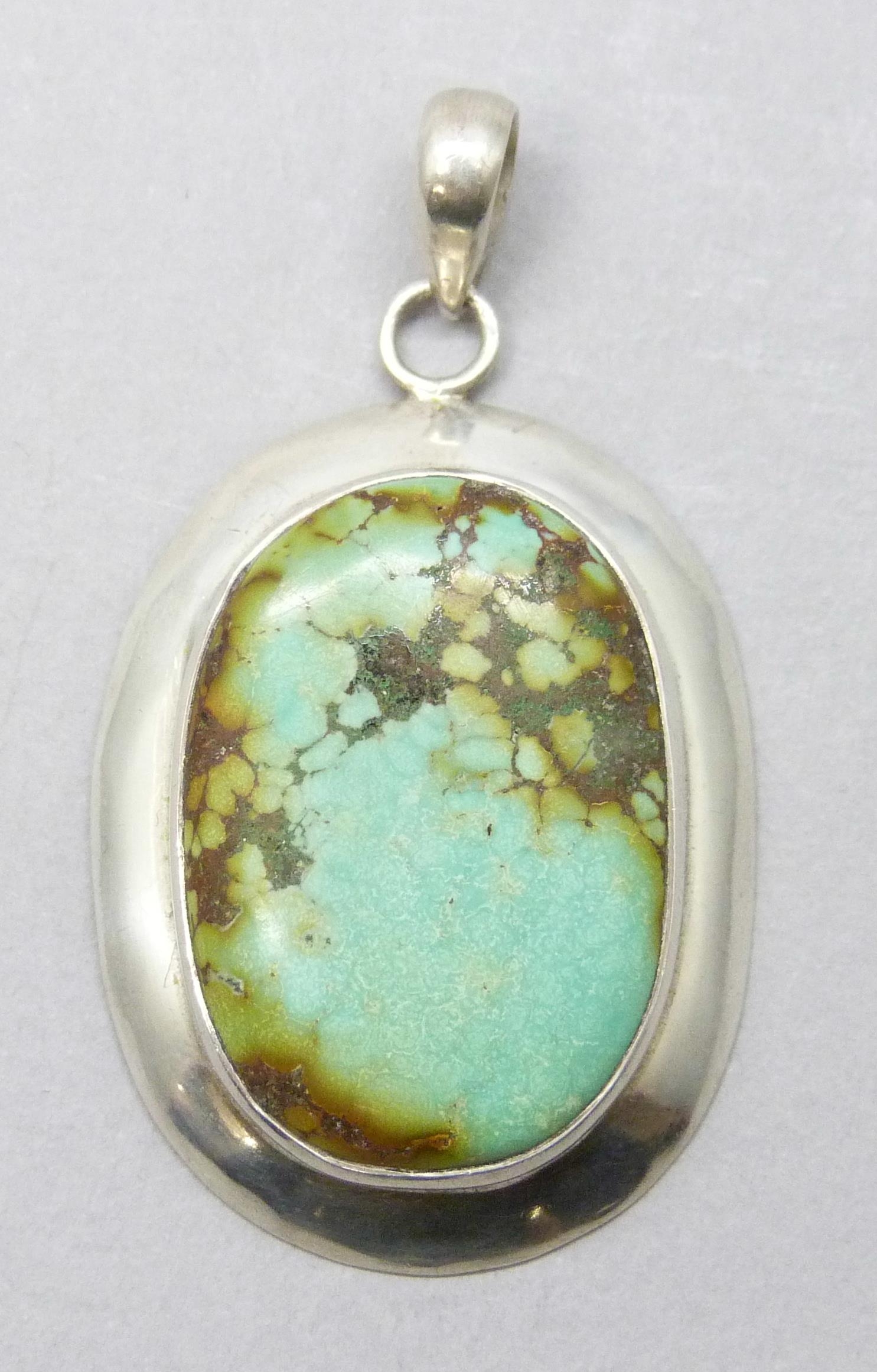 A large silver pendant set with turquoise, possibly Mexican, 17g, 5.8cm including bail
