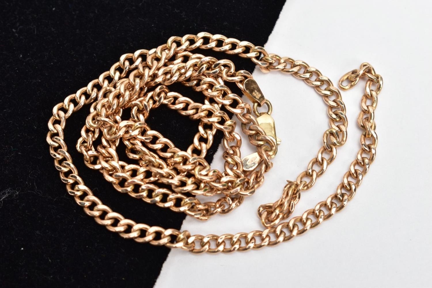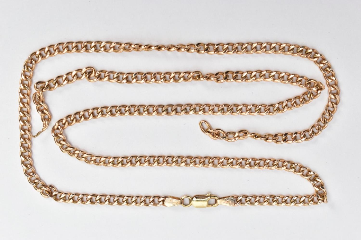 A BROKEN 9CT GOLD CURB LINK CHAIN, one link is broken, fitted with a lobster claw clasp, hallmarked 9ct gold Sheffield, approximate gross weight 7.6 grams