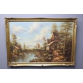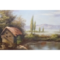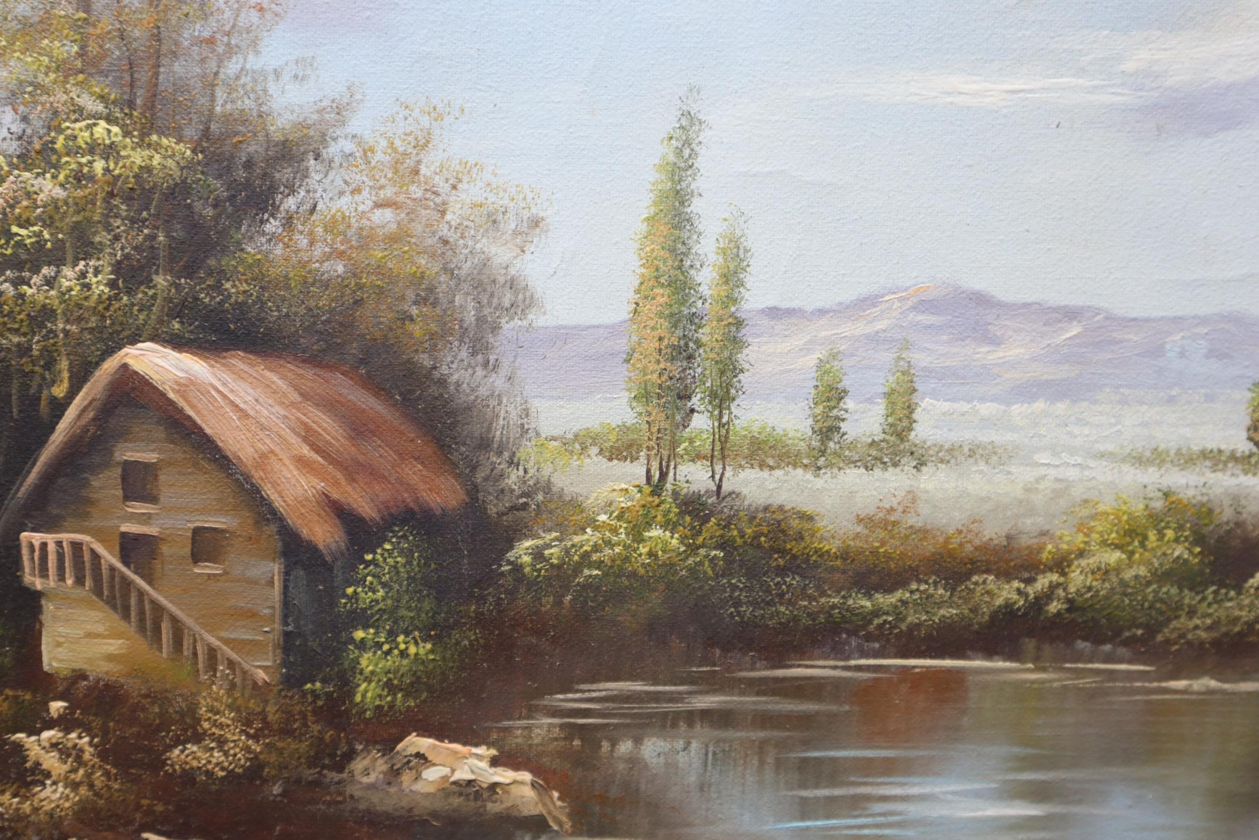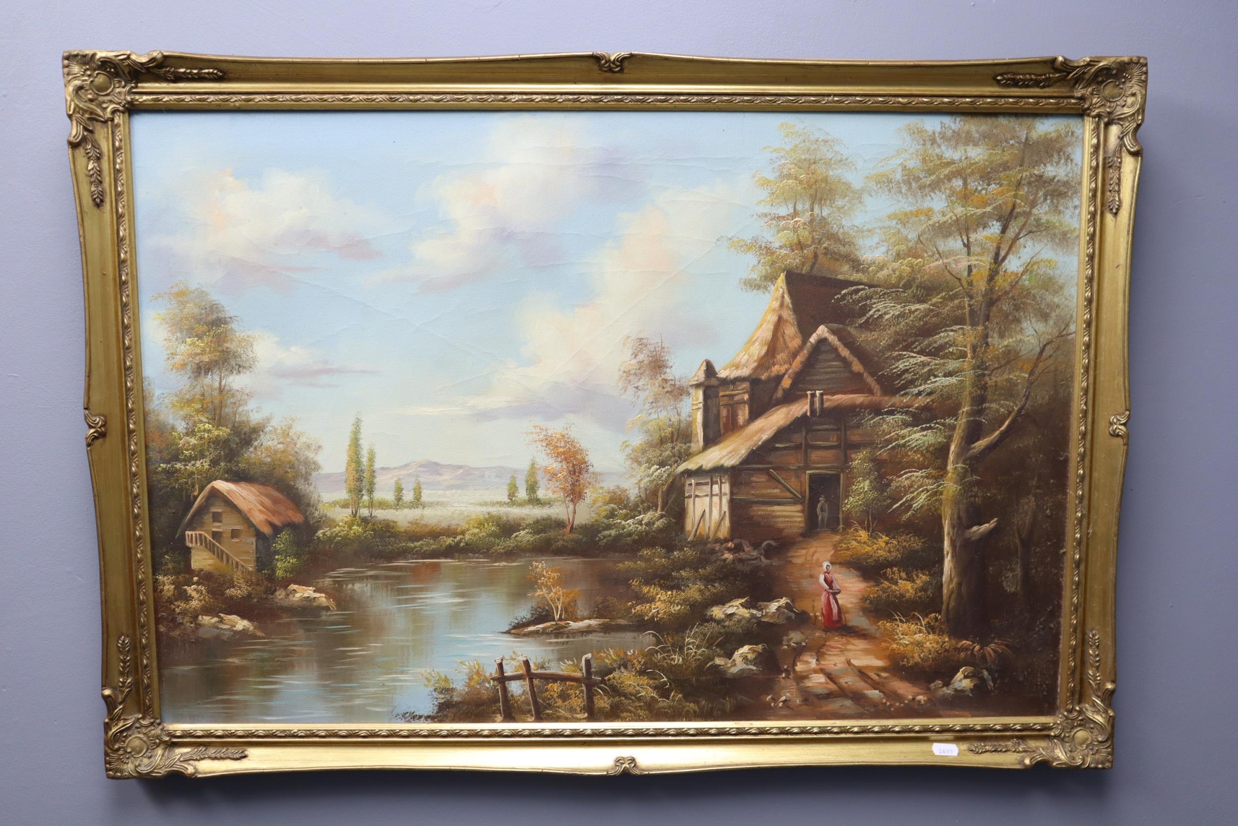 Original Oil on Canvass of Thatched Cottage Scene in Gilt Framed Mount Signed to Bottom Right (39" x 27")