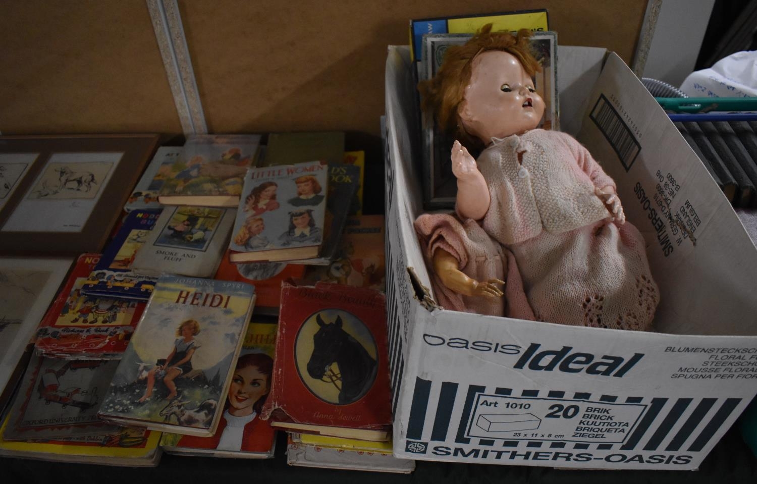 A Collection of Various Mid 20th Century Books to Include Enid Blyton Etc together with Two Vintage Dolls Etc