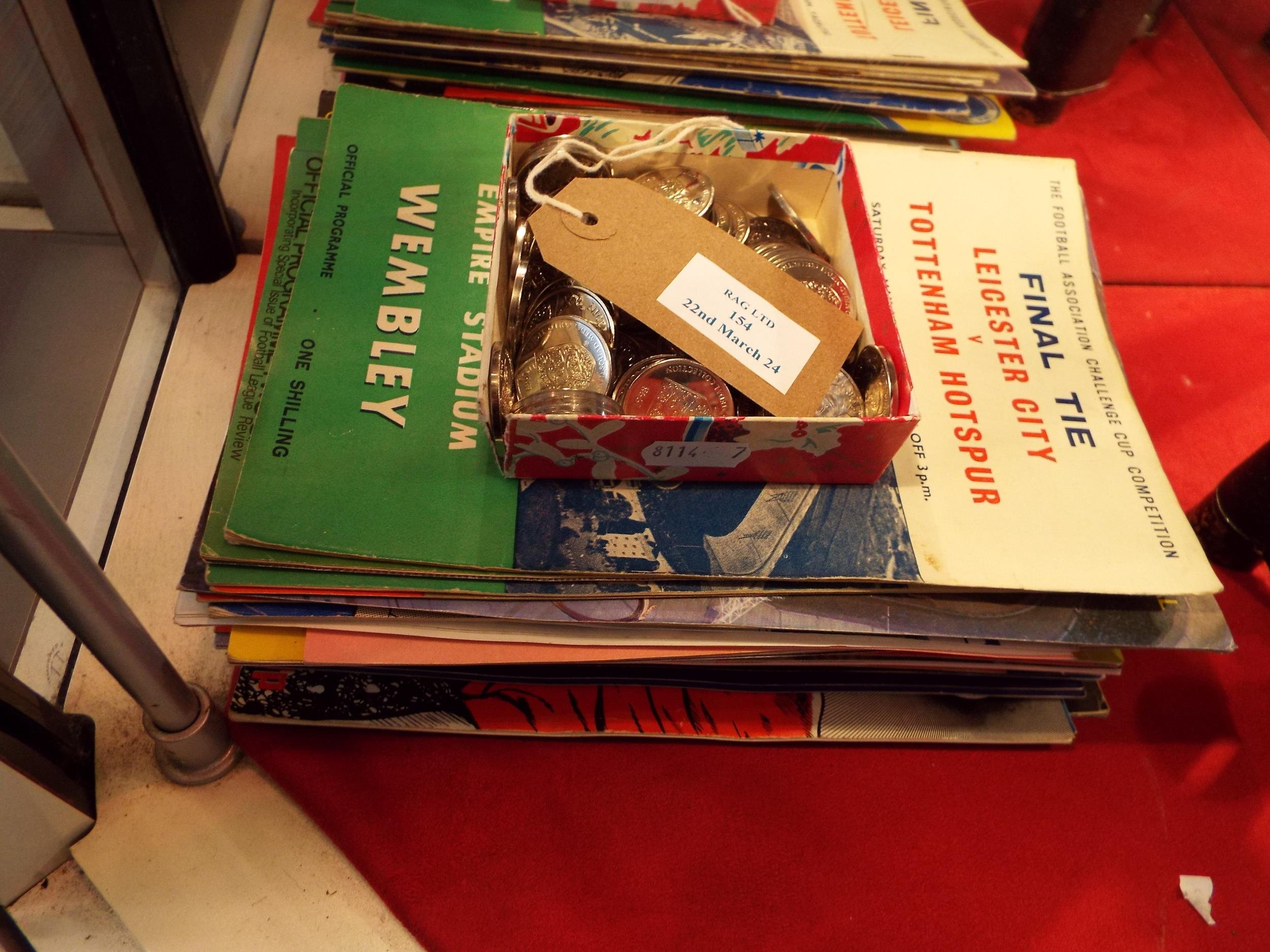 A qauntity of Football programmes to include Final Tie Leicester City V Tottenham Hotspur, Bristol City V Middlesborough 68/69 etc together with a selection of Football related coinage
