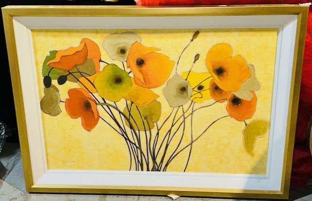 Large Gilt Framed Novak Textured Print "Pumpkin Poppies" From Alannah Interiors - Approx 42" x 30"