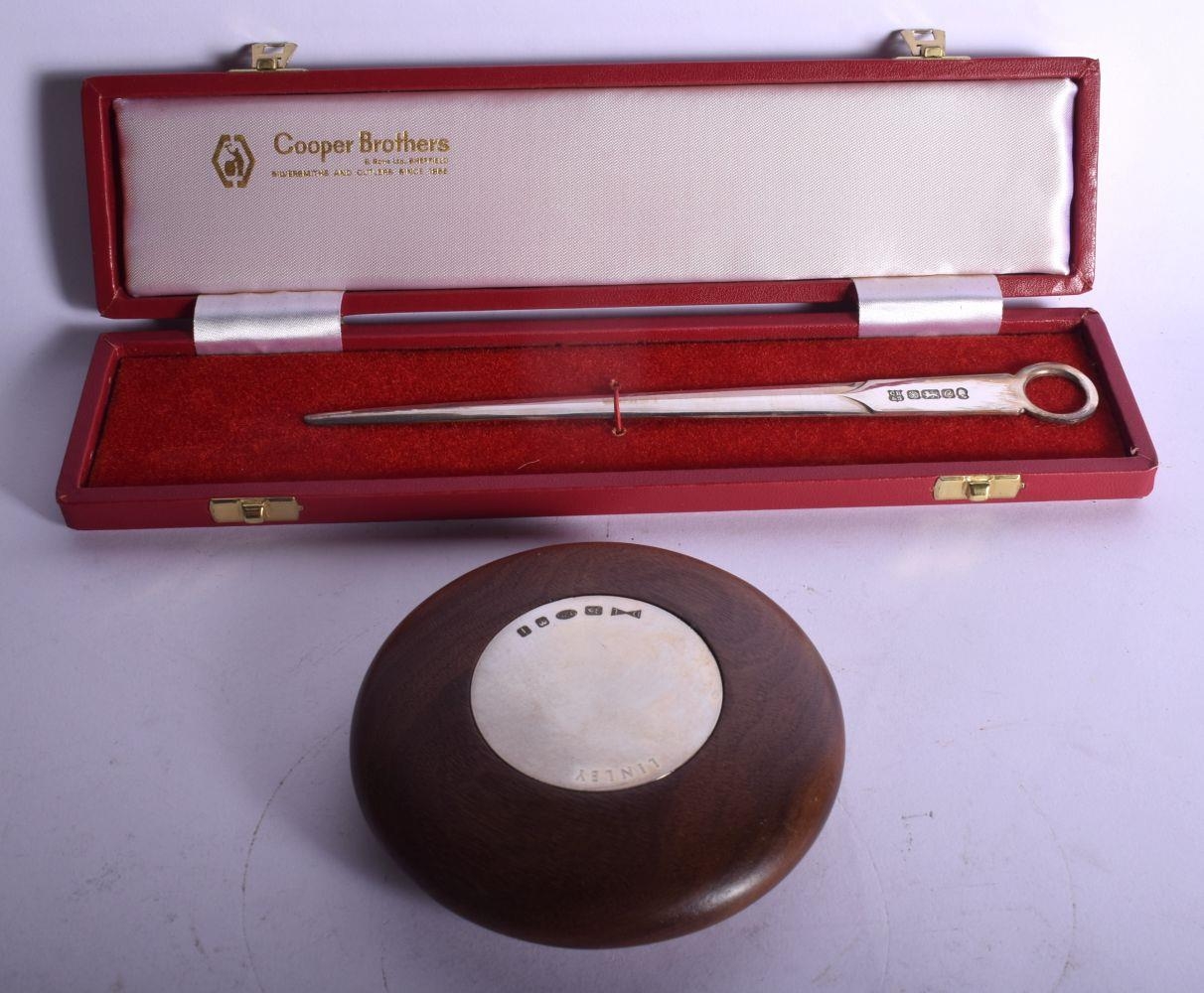 A DAVID LINLEY SILVER PEBBLE PAPERWEIGHT together with a silver letter opener. (2)