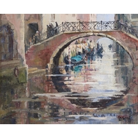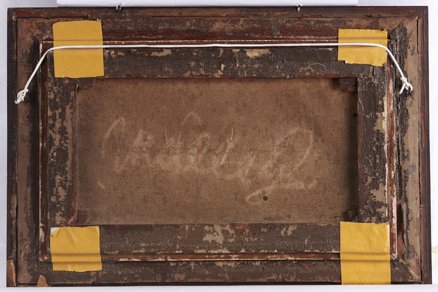 Varnish yellowed with age, support uneven and requires re-stretching, on the original stretchers beneath glass in early 20th c oak frame
