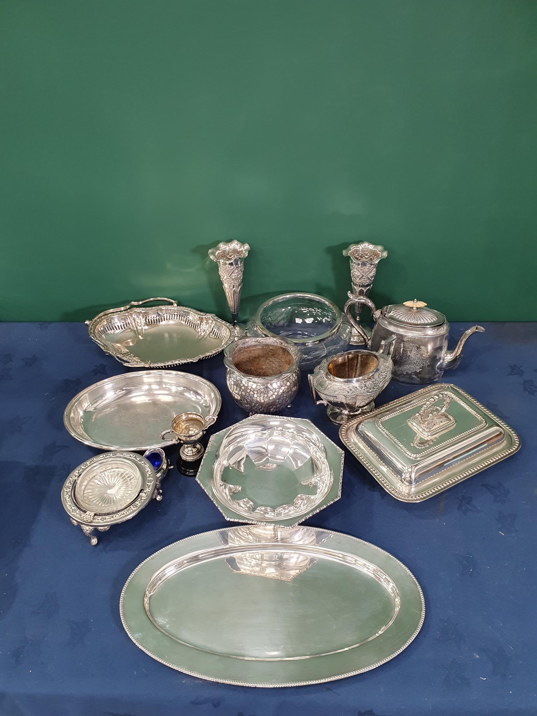 A quantity of plated items including a pair of Spill Vases, an Entree Dish and Cover, Baskets, etc, (R10)