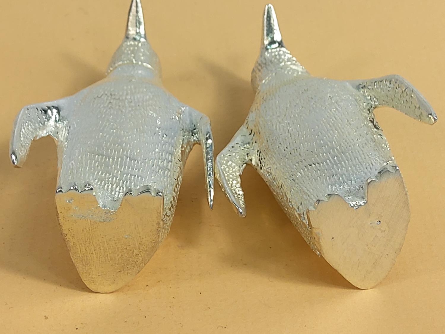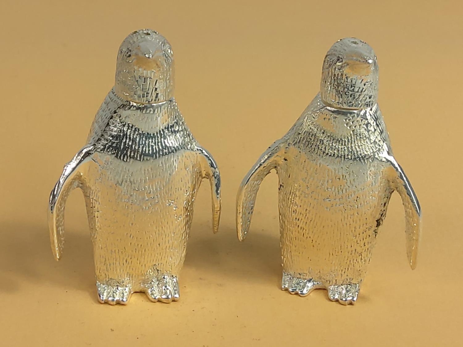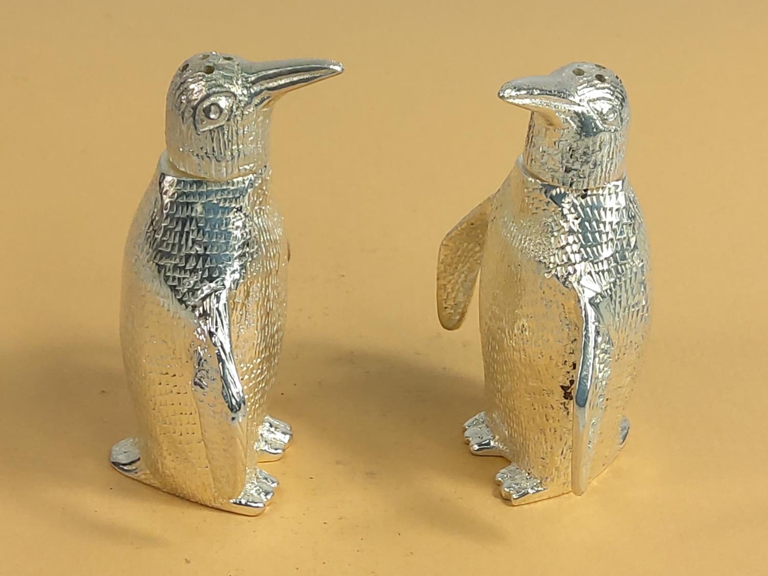 Plated penguin 2 piece cruet, 8cms in height