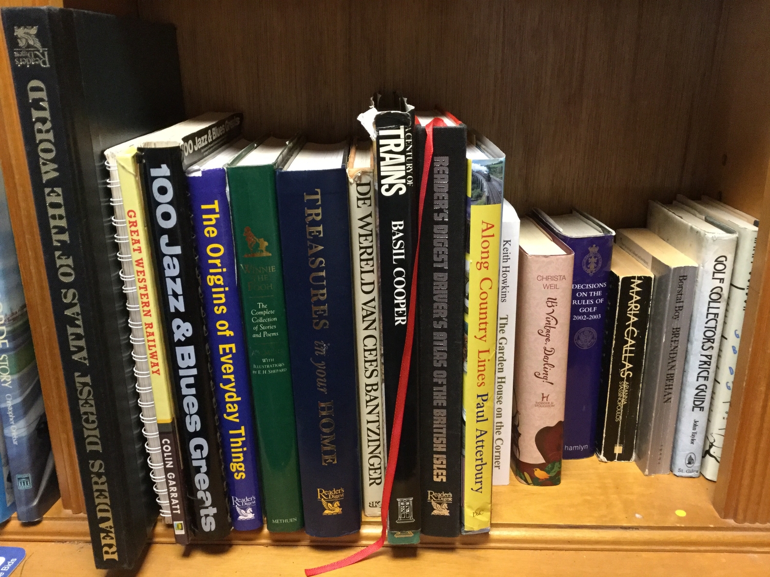 A shelf of books, assorted interest -
