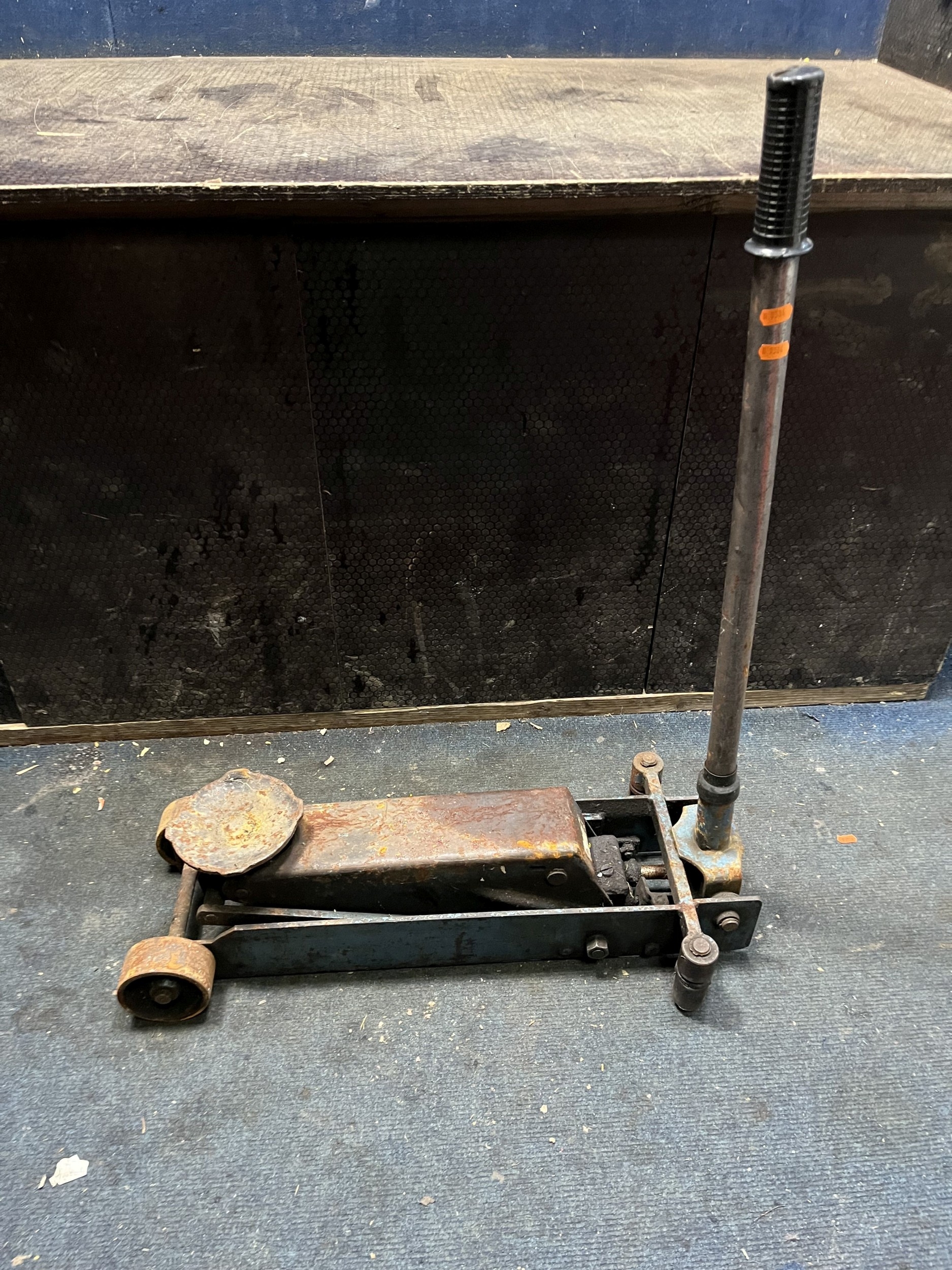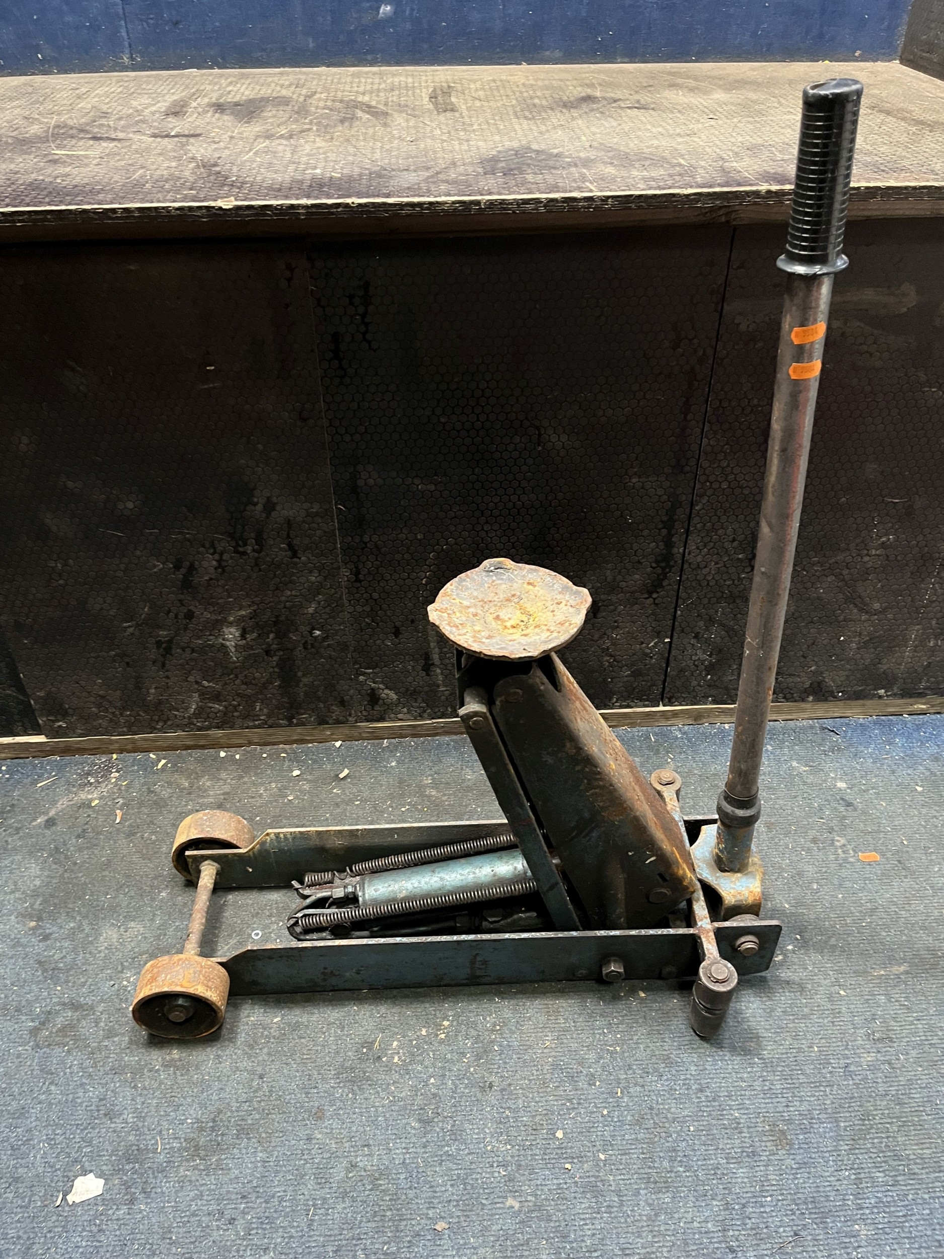 A VINTAGE TROLLEY JACK max raised height 51cm. Condition Report: rusty, but operation not impeded