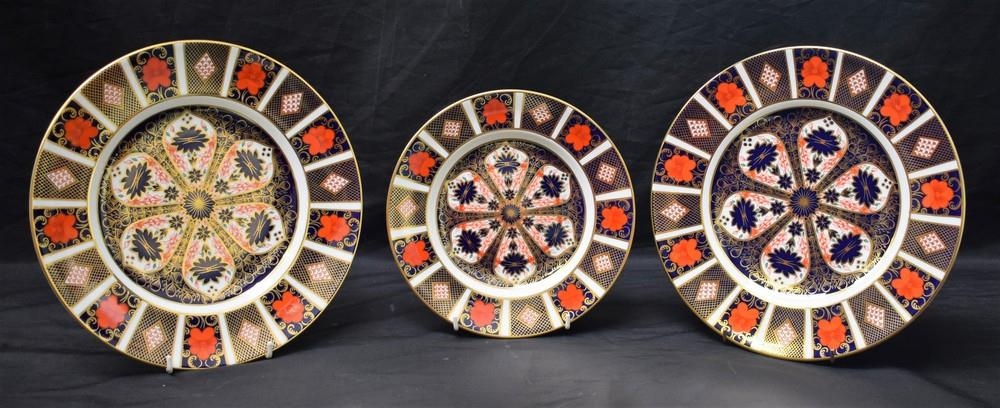 A pair of Royal Crown Derby 1128 Old Imari pattern dinner plates, second quality; a similar side plate, first quality (3)