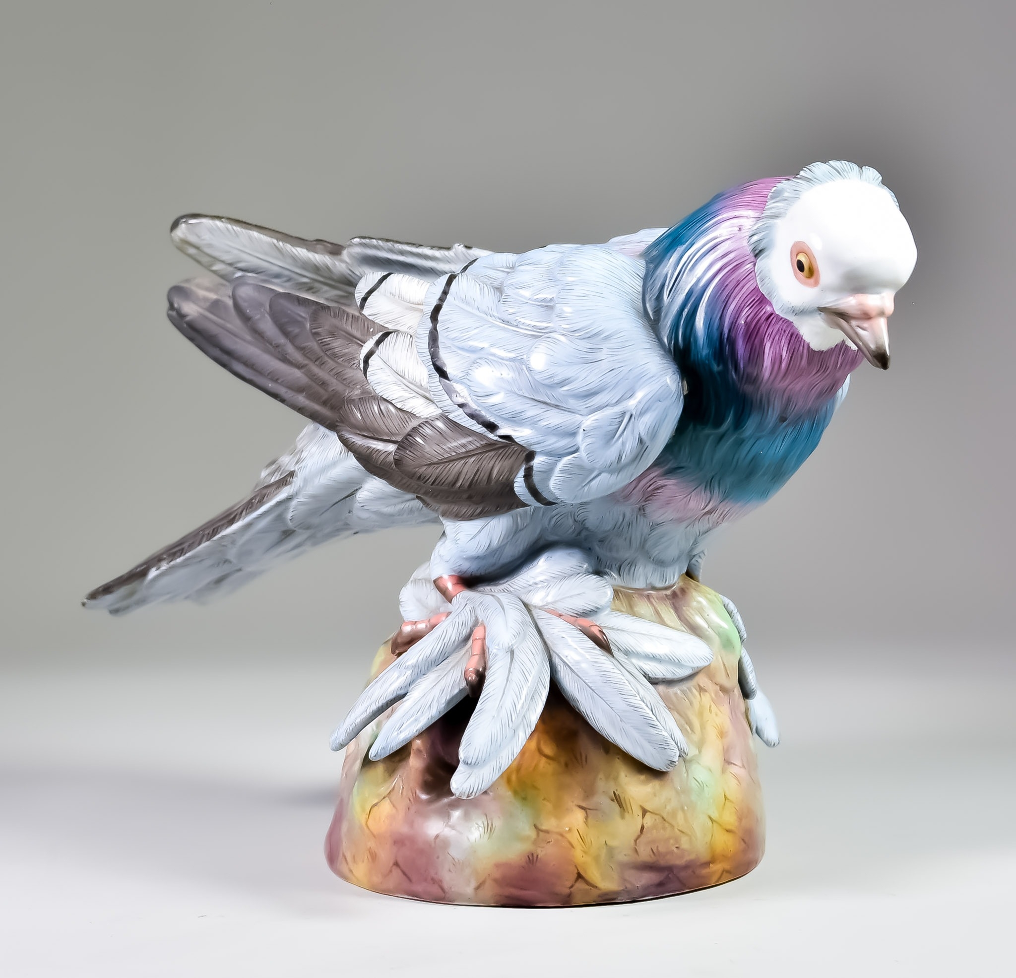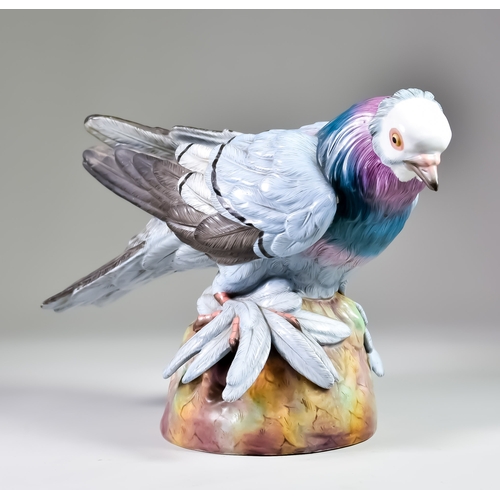 A Sitzendorf Porcelain Pigeon, 19th Century, on naturalistic base blue underglaze mark to base, 8.5ins high
