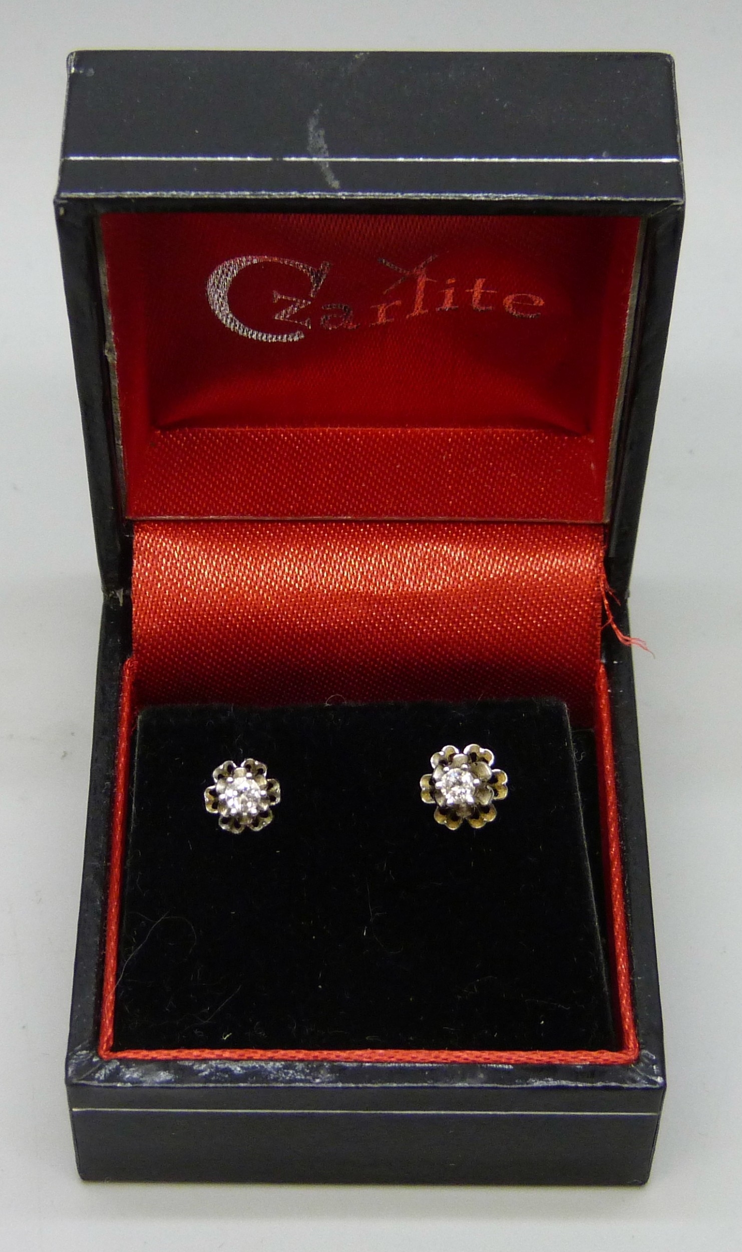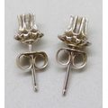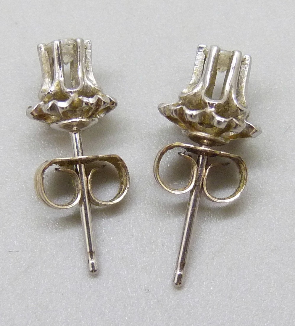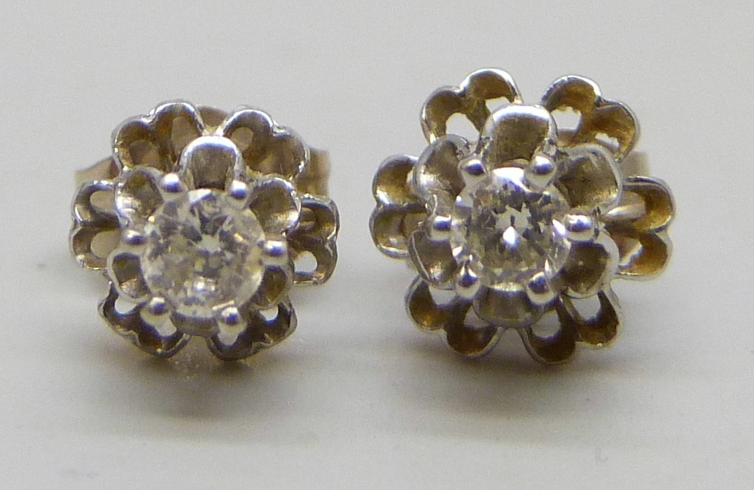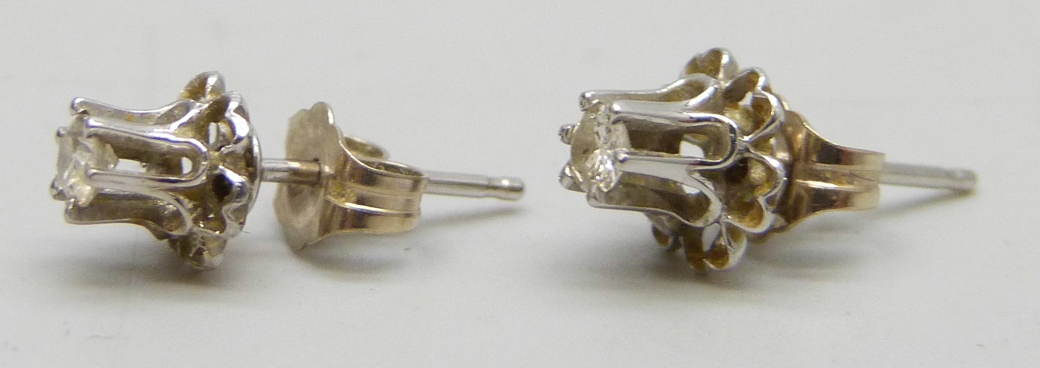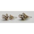 A pair of white metal set diamond stud earrings, butterflies marked 14k, 0.9g