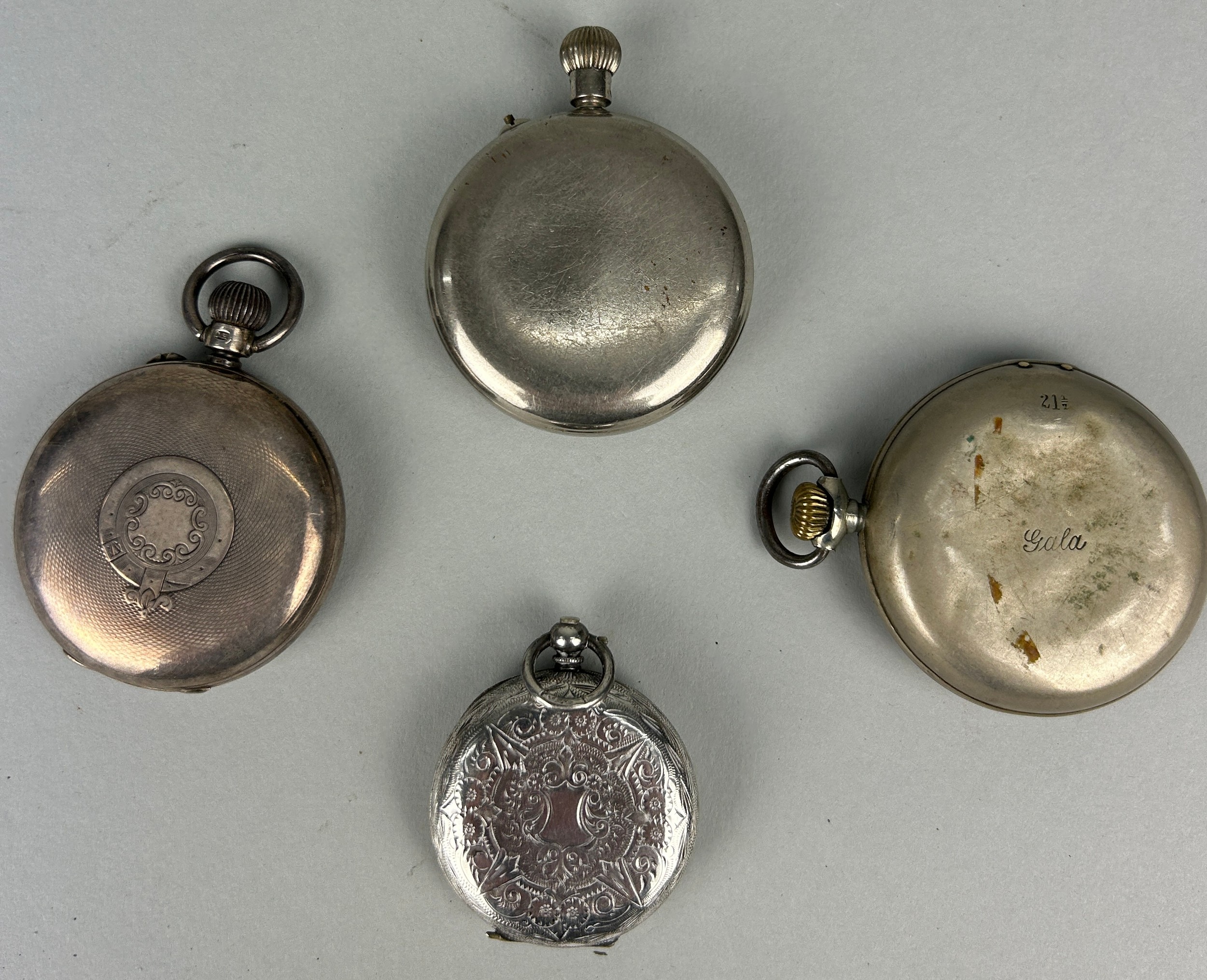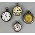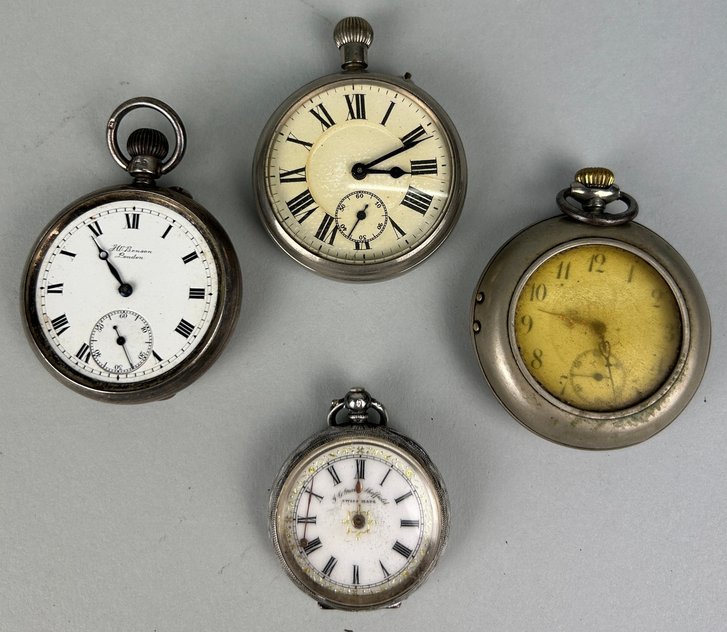 A COLLECTION OF FOUR SILVER AND METAL POCKET WATCHES,