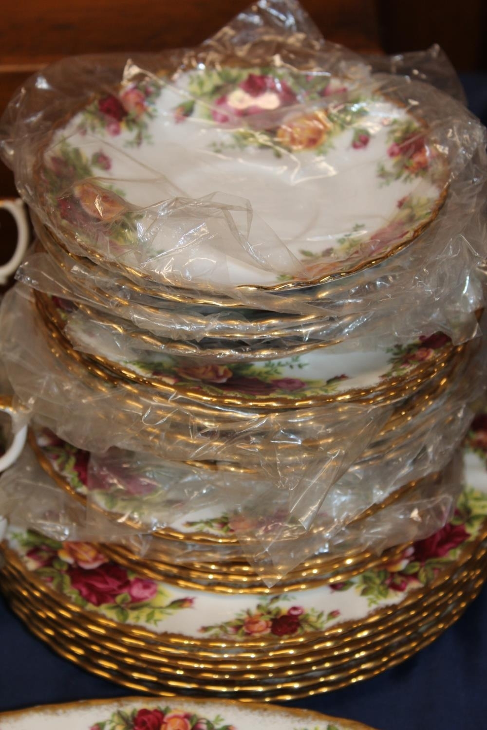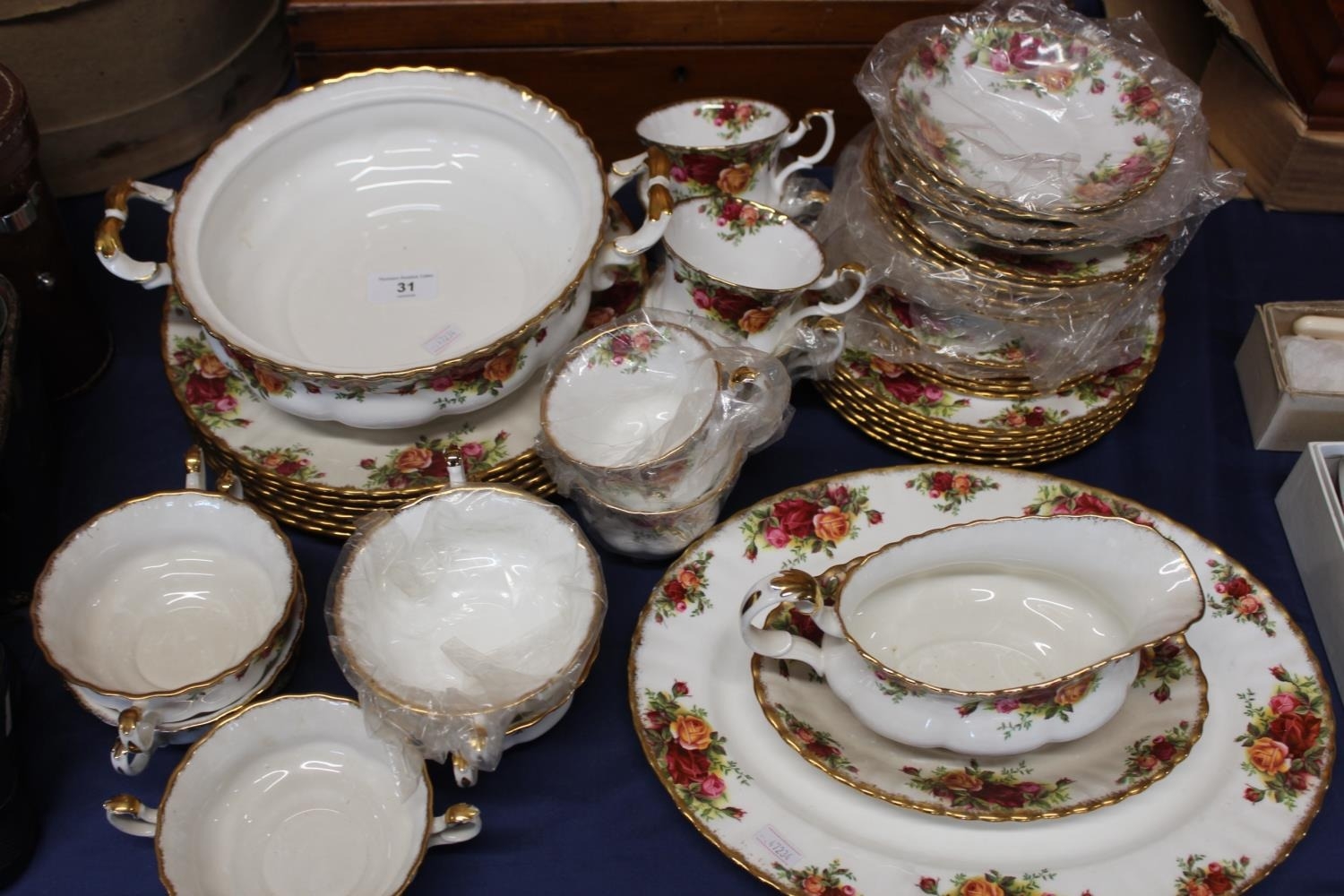 Royal Albert Old Country Roses tea and dinner ware to include ashet, sauce boat, twin handled soup bowls, etc.