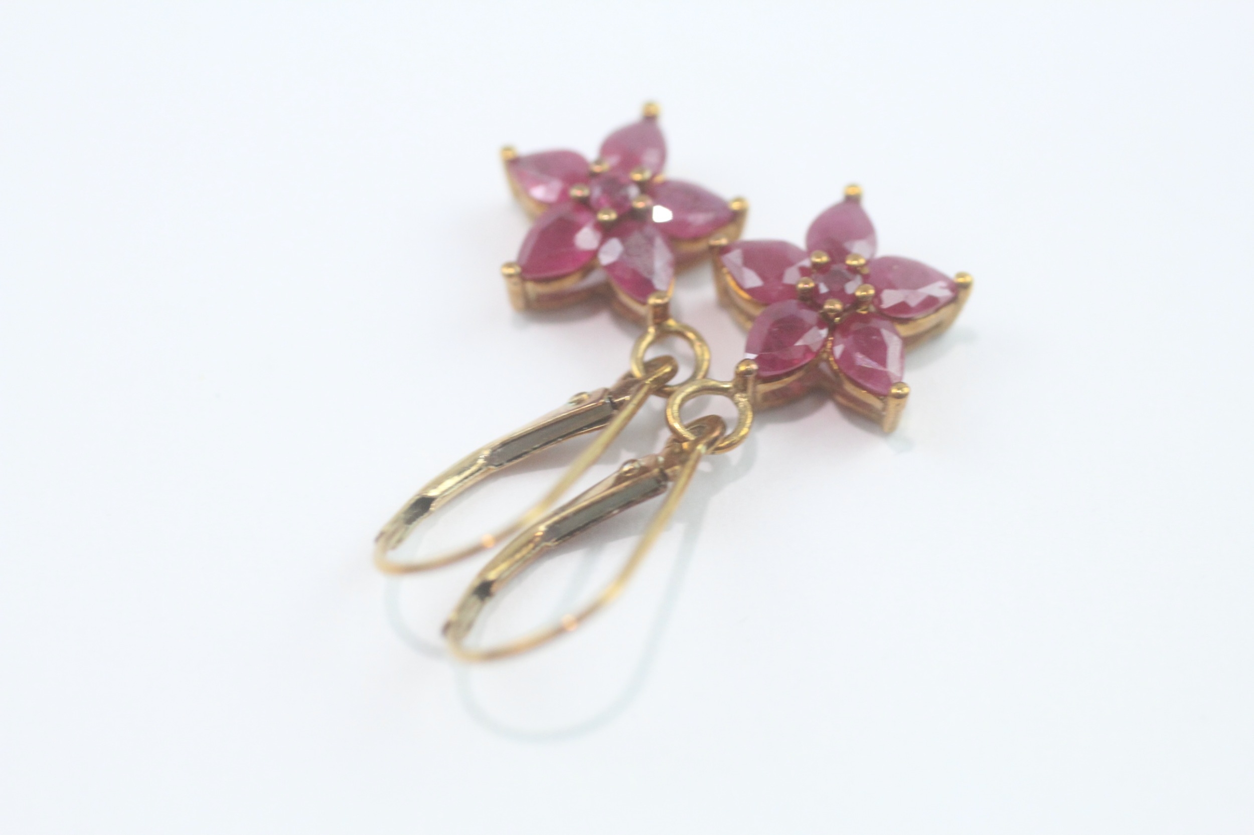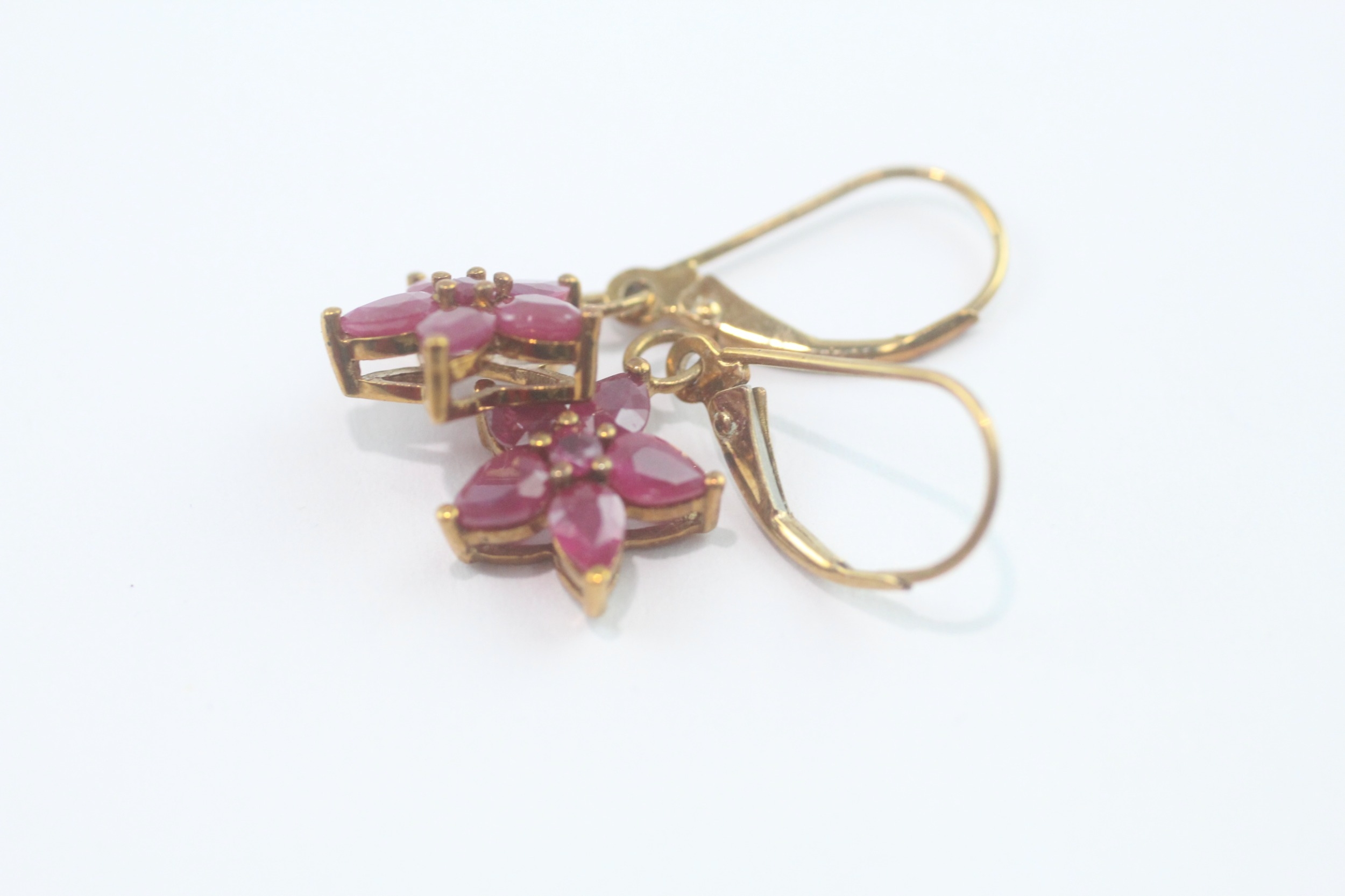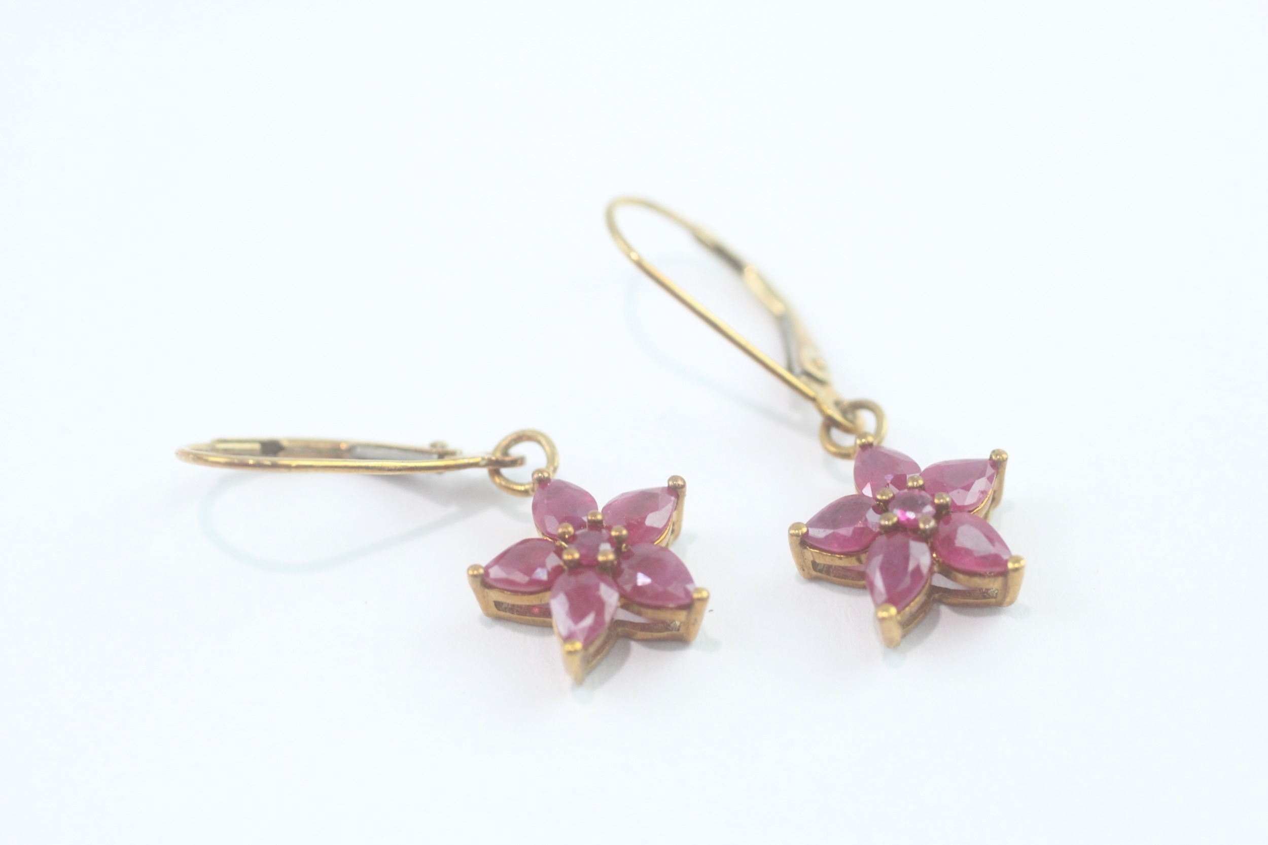 9ct gold ruby cluster drop earrings (2.1g)