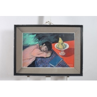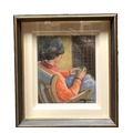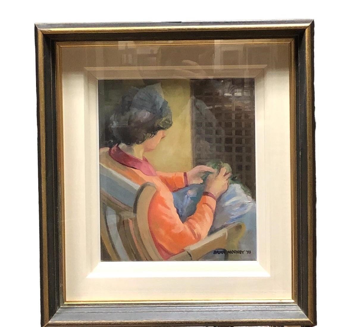 BRIAN MOONEY Woman Sewing Oil on canvas Signed lower right, dated '93 36cm (h) x 29cm (w)